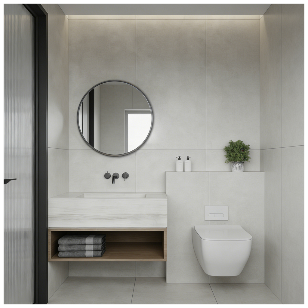 Díky svému kulatému tvaru a preciznímu zpracování dokáže toto zrcadlo opticky zvětšit a projasnit každý prostor. Je ideálním řešením pro menší místnosti, kterým dodá hloubku a pocit vzdušnosti. Skleněná plocha poskytuje čistý odraz, zatímco černý rám vytváří výrazný kontrast, který přitahuje pozornost a doplňuje moderní vybavení domácnosti.