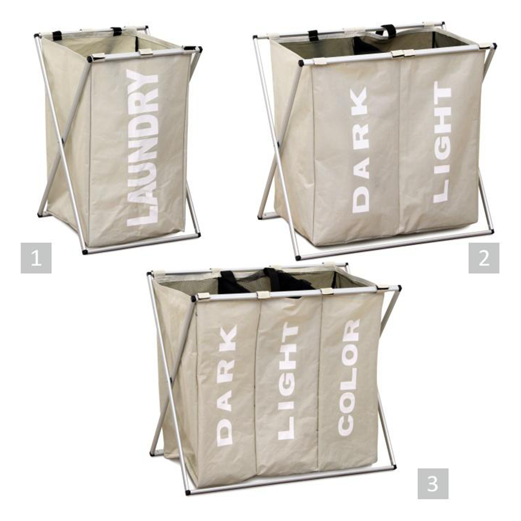 Látkový koš na prádlo, šedobéžová, LAUNDRY TYP 3