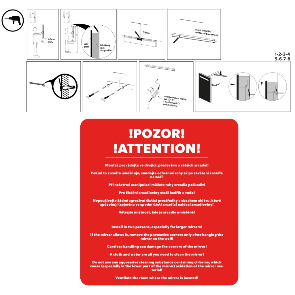 | Poznámka: | Osvětlení nemá vypínač a je nutné je napojit na el. instalaci s vypínačem na zdi |