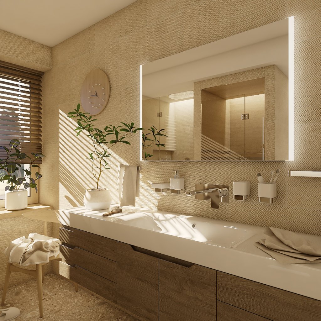 Obdélníkové bezrámové zrcadlo s ostrými rohy a podsvícením ze stran pro moderní a elegantní vzhled.Zrcadlo bez integrovaného vypínače je určené k připojení a ovládání nástěnným vypínačem. Barva podsvícení zrcadla je pevně nastavena.