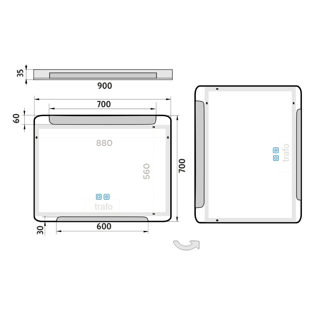 LED zrcadlo 900x700 se dvěma dotykovými senzory - ZP 22019VX
