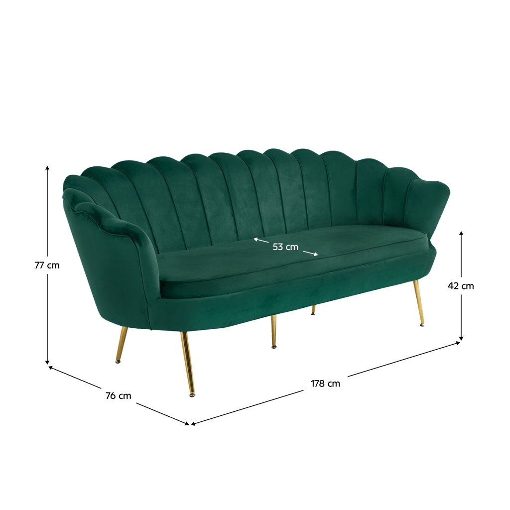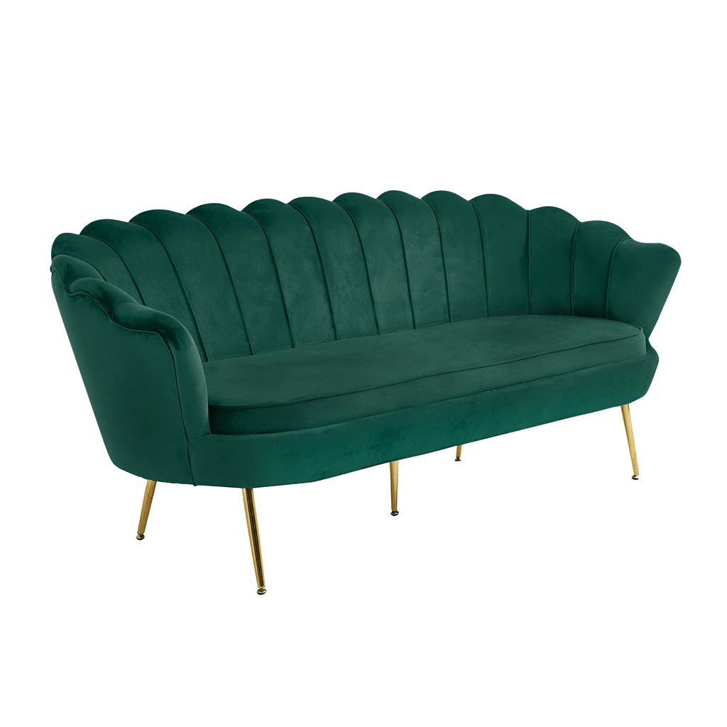 Luxusní pohovka, 3-sed, smaragdová Velvet látka/chrom zlatý, styl Art-deco, NOBLIN