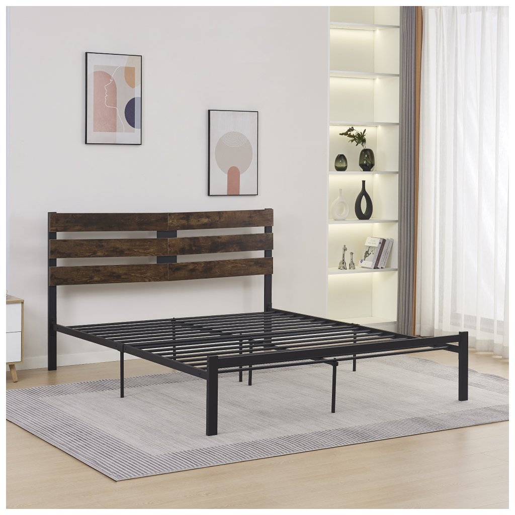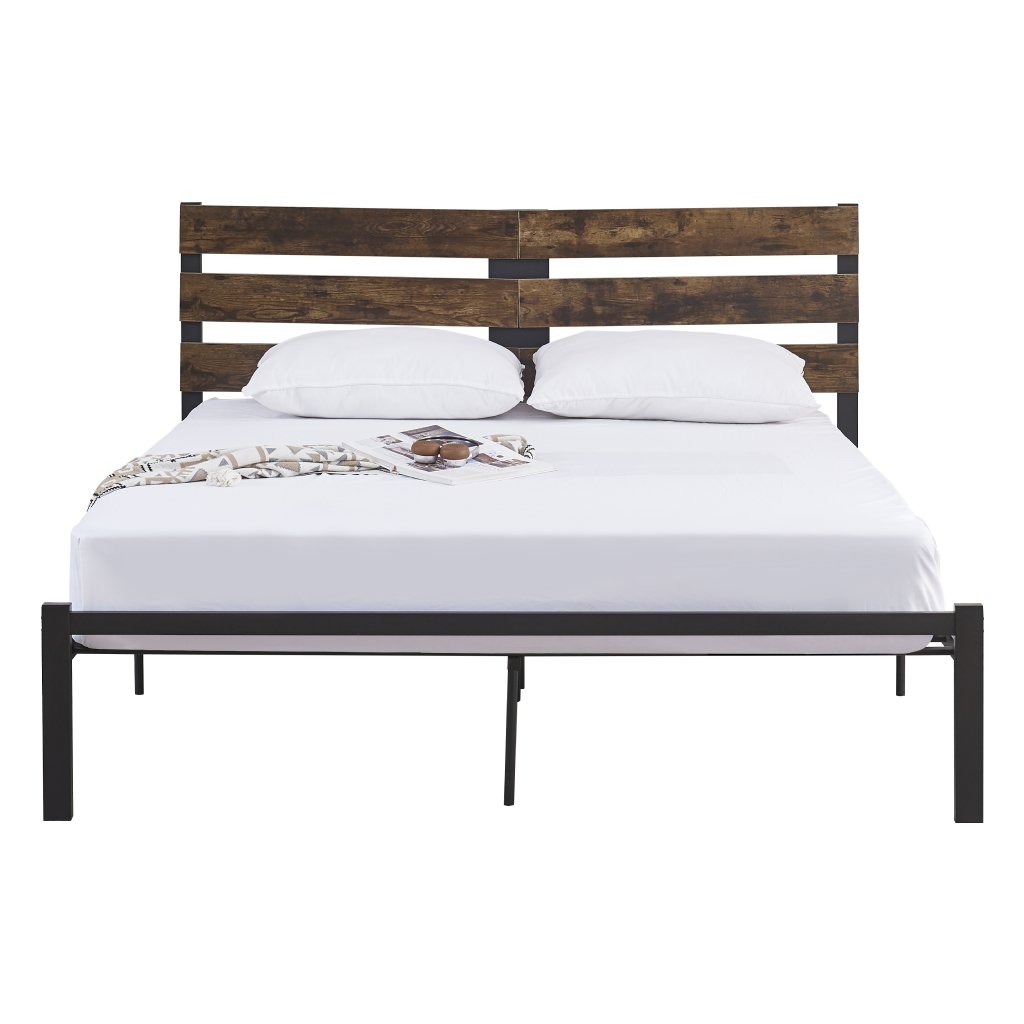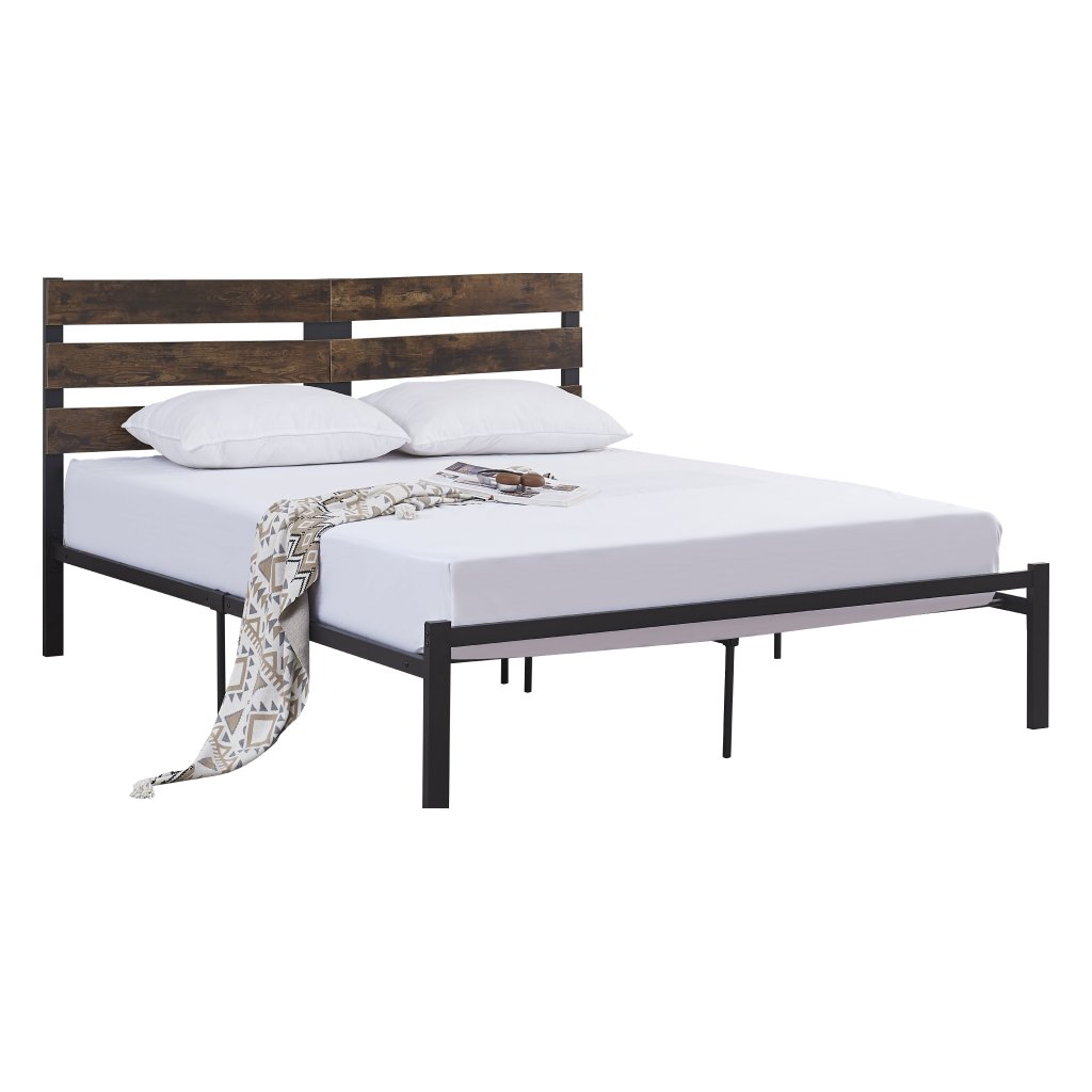 Manželská postel s roštem, dub rustikal/kov, 180x200, ANEYA