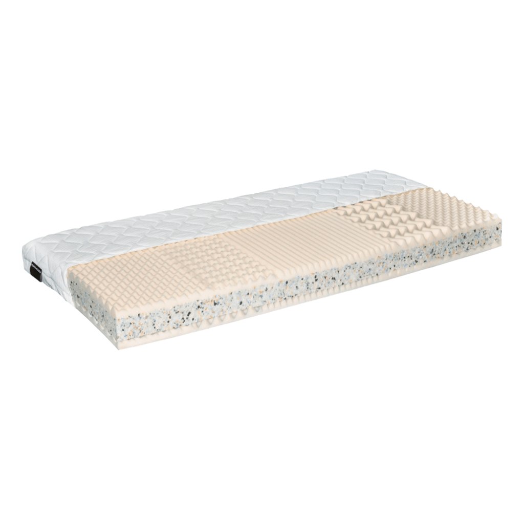 Matrace je tvořena kombinací dvou PUR pěn a RE pěn,Profilace na obou PUR pěn zajistí dokonalé prokrvení pokožky,