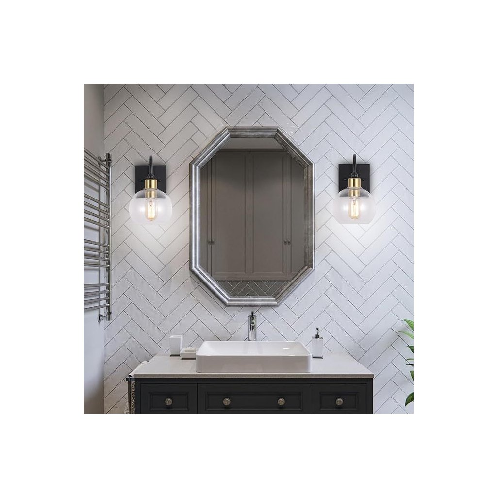 Elegantní nástěnné svítidlo, které kombinuje moderní design a funkčnost.Skleněné stínidlo v kombinaci s kovovými prvky v černé a zlaté barvě dodá interiéru okouzlující nádech.
