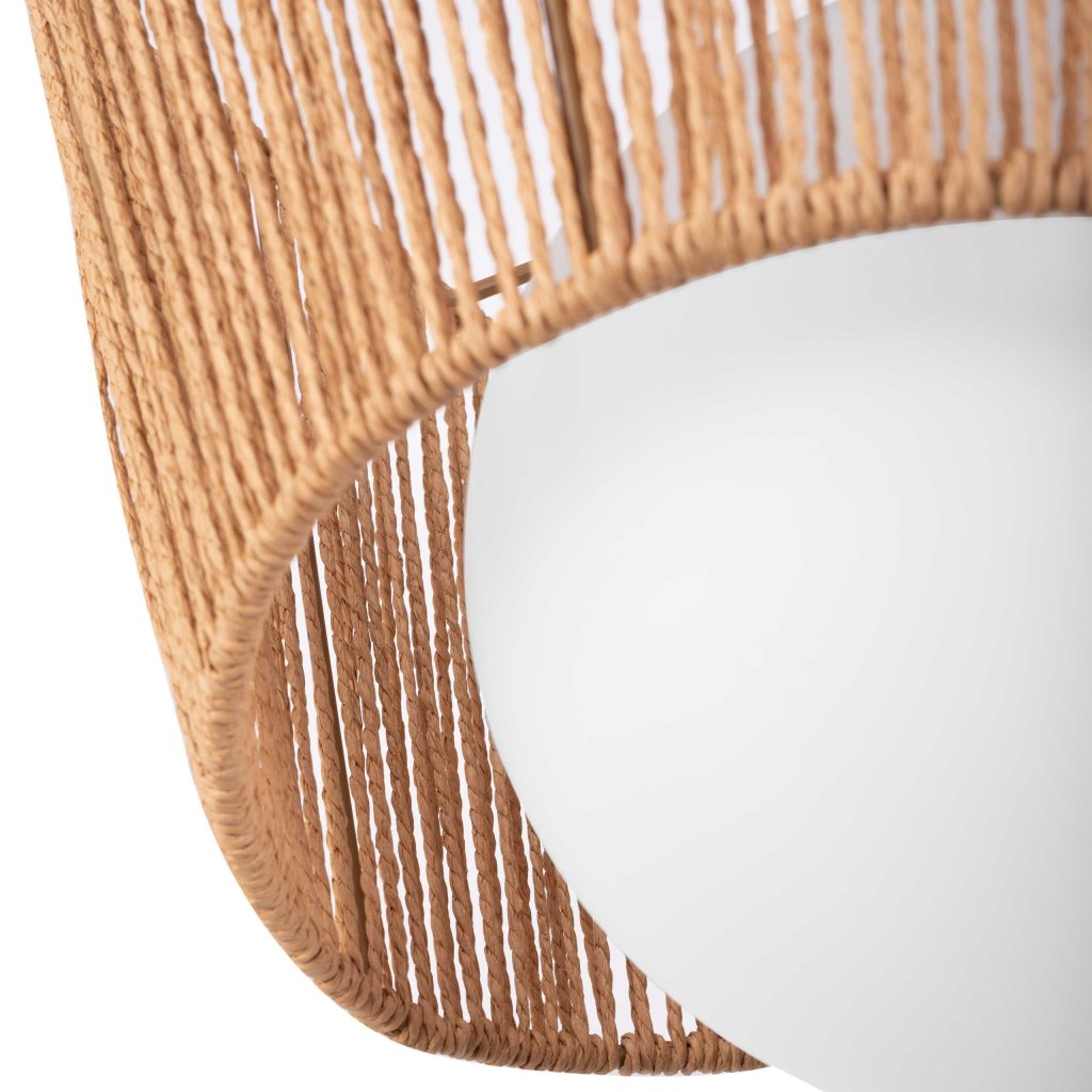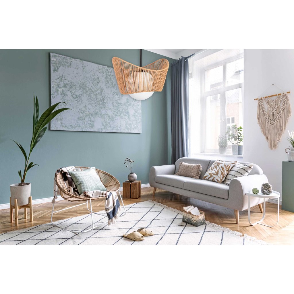 Stropní lampa v boho stylu je jedinečnou kombinací přírodního jutového lana a odolného kovu, která v interiéru vytváří hřejivou a útulnou atmosféru.Lampa je vybavena světelným zdrojem se závitem E27, poskytuje rovnoměrné osvětlení a otevřená stínidla jí dodávají lehkost a jedinečný nádech.