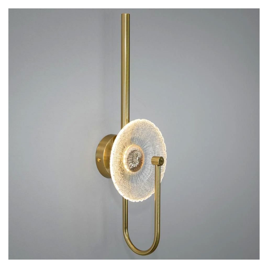 Moderní LED nástěnné osvětlení v kartáčovaném zlatém provedení je designovým akcentem s dekorativním charakterem, který spojuje estetiku s příjemným, náladovým světlem. Ozdobná forma osvětlení vychází z prohnutého zlatého rámu a stínidla z průhledného skla s texturovaným povrchem.