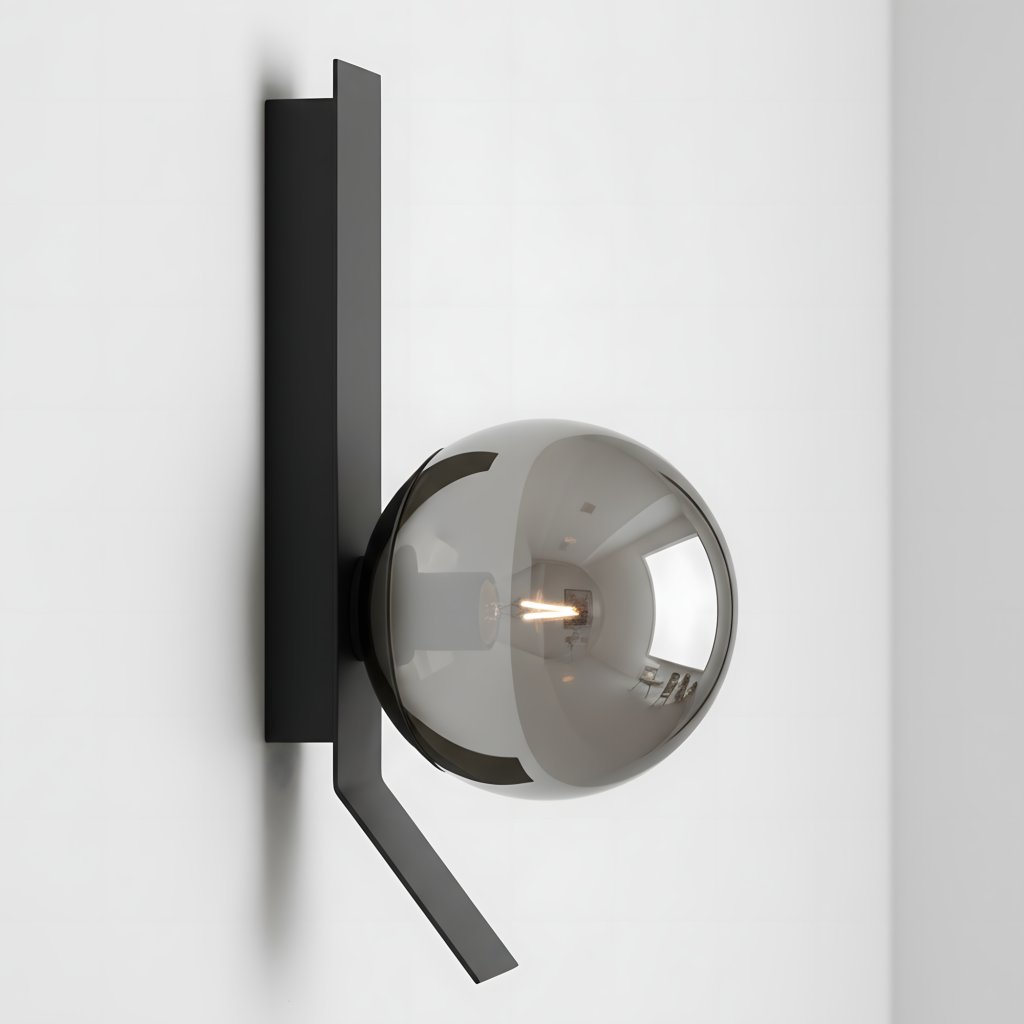 Nástěnné osvětlení APP1757-1W černé/chrom spojuje minimalistickou černou linii s lesklou koulí v odstínu kouřového chromu. Geometrická forma uspořádává stěnu a poloprůhledný klosz vytváří náladové světlo, které dodává interiéru eleganci a hloubku.