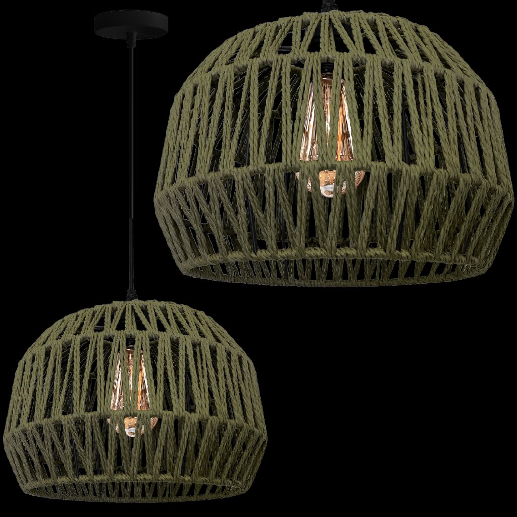 Zelená boho lampa z jutového provazu je dokonalou kombinací přírodních materiálů a moderního designu.Její ažurový design jemně rozptyluje světlo a vytváří v místnosti útulnou atmosféru.