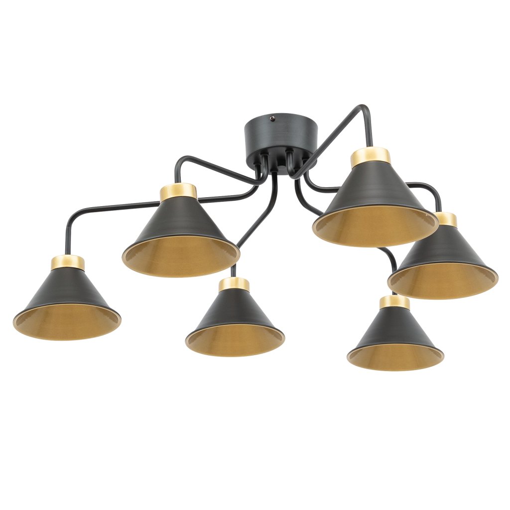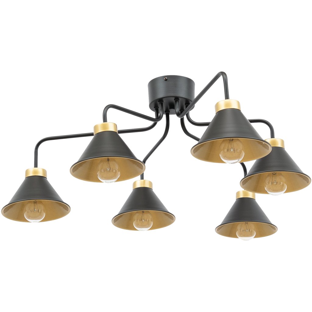 Lustr Detmer je stylový doplněk do vašeho interiéru. Jeho černý vnější povrch dodává moderní vzhled, zatímco vnitřek stínidla je ozdoben zlatou barvou, která přidává eleganci. Můžete použít žárovky s maximálním výkonem 15 W, což zajistí dostatečné osvětlení při zároveň úsporné spotřebě energie. Díky stupni ochrany IP20 je lampa vhodná do interiérů, ale není doporučena do vlhkých prostor.Lampa je vyrobena z oceli, což zajišťuje její odolnost. Má standardní závit E27, což znamená, že je kompatibilní s různými typy žárovek. Lustr Detmer je ideální volbou pro ty, kteří chtějí do svého interiéru vnést eleganci a moderní akcent.