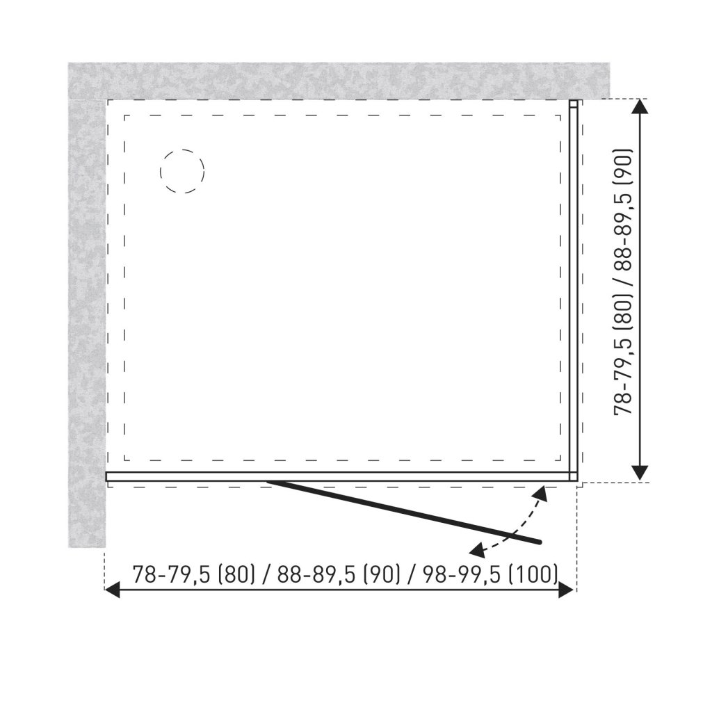 Systém využívá osvědčené jednokřídlé otočné dveře, které poskytují široký a pohodlný vstup. Konstrukce je tvořena hliníkovými profily a výplní z čirého tvrzeného bezpečnostního skla tl. 6 mm. Profily nabízejí možnost regulace na stěně, což umožňuje vyrovnat drobné nerovnosti zdiva a zajistit tak perfektní těsnost při instalaci.
