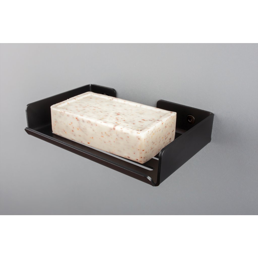 Estetická mýdlenka s jednoduchým a moderním designem. Díky moderním tvarům se stane dekorativním prvkem každé moderní koupelny. Mýdlenka má praktické okraje, takže i mokré a kluzké mýdlo zůstane na svém místě. Odkapávač zajišťuje správné vysoušení tyče a zabraňuje jejímu nadměrnému používání. Výrobek se montuje na stěnu.Šrouby pro montáž ve stejné barvě jako povrchová úprava