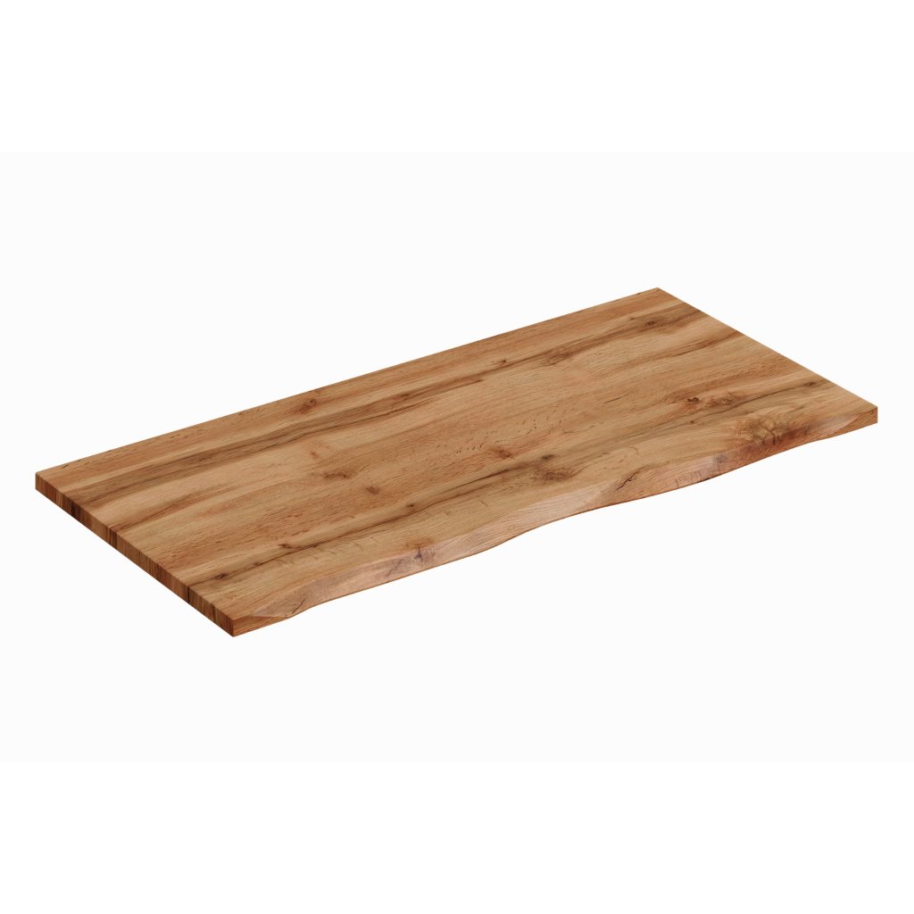 Deska pod umyvadlo Nature Wotan 100 cm je inspirována přírodním dřevem – její nepravidelná, lehce zvlněná hrana napodobuje přirozeně řezaný kus dřeva, což dodává prostoru autentický a útulný charakter. Dekor dub Wotan s výrazným žíháním a kontrastními tóny přidává hloubku a vizuální výraznost.