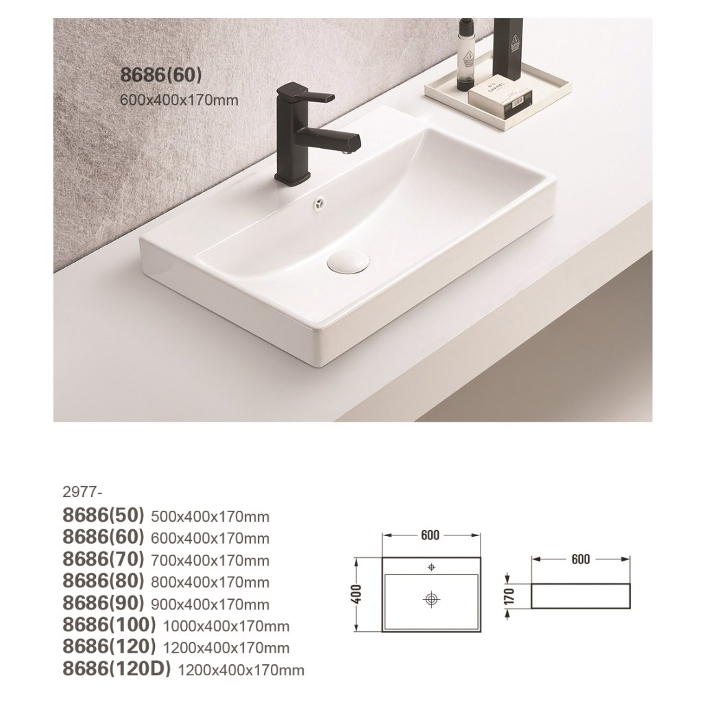 Nábytkové keramické umyvadlo UN-RITA-GW-60, 60x40 cm, bílá lesklá