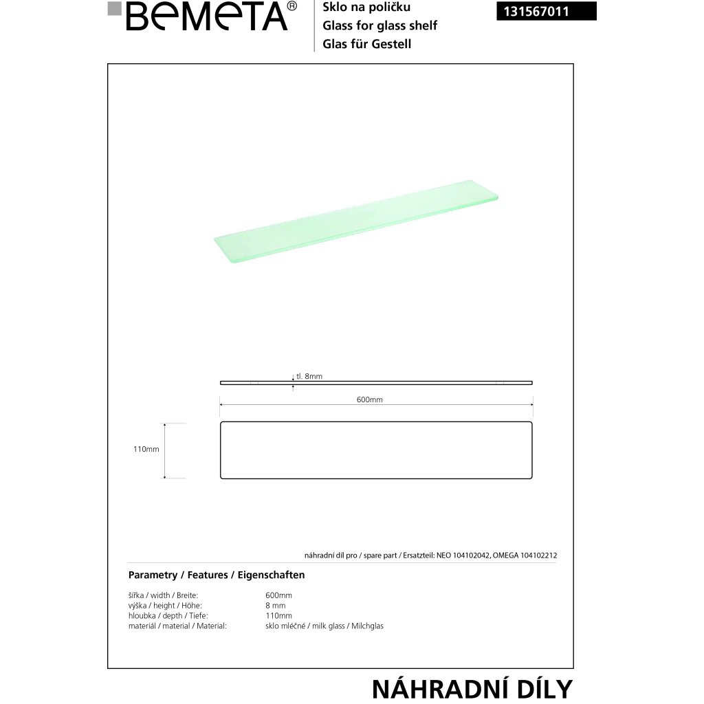 Náhradní sklo pro poličku 132102042,104102212,104102208,104102045,104102042,104102040 - 131567011