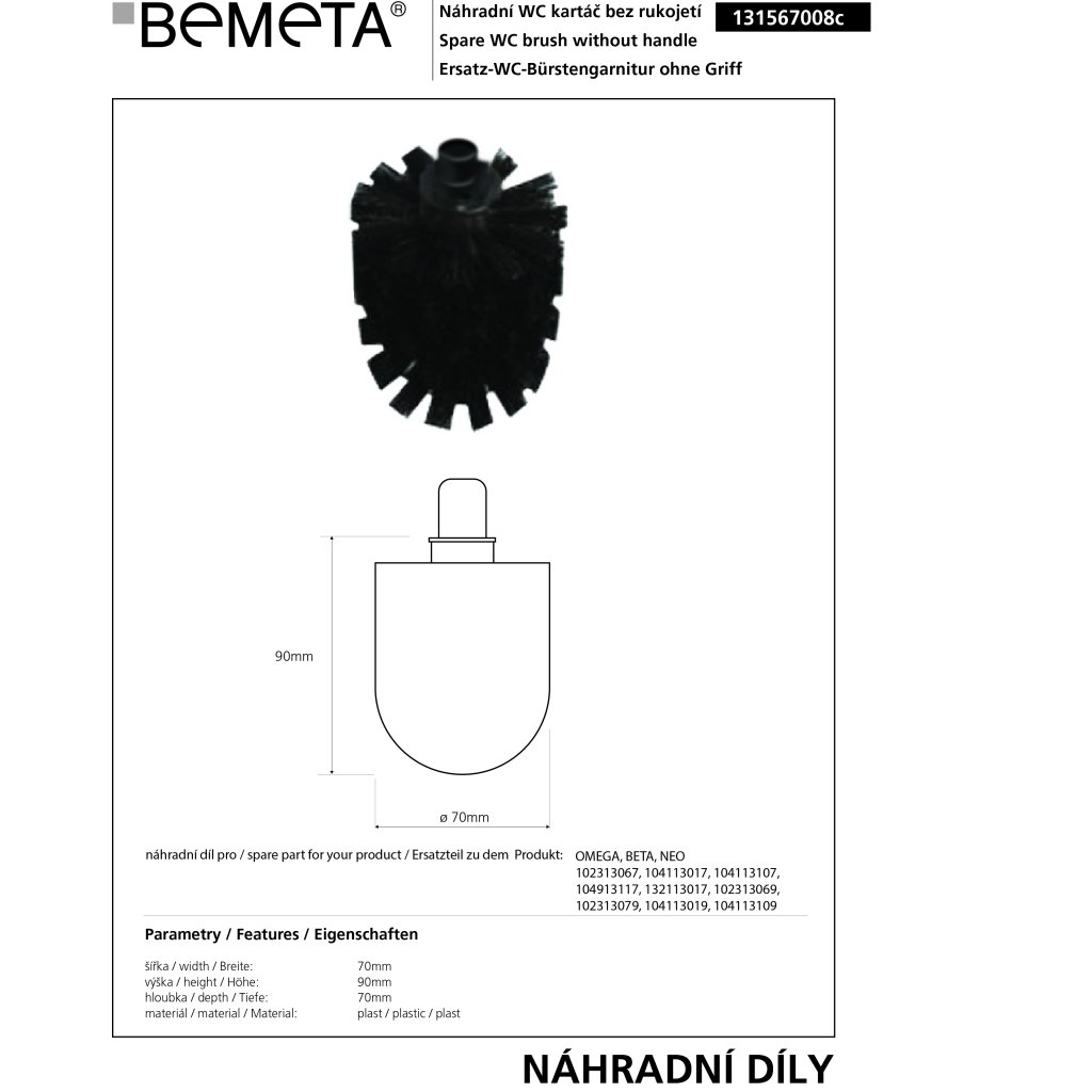Náhradní WC kartáč bez rukojeti pro 10231360,102313067,102313057,104113017,104113107 černý - 131567008c
