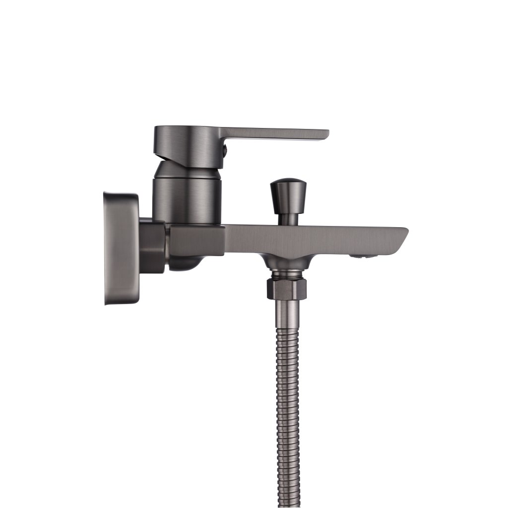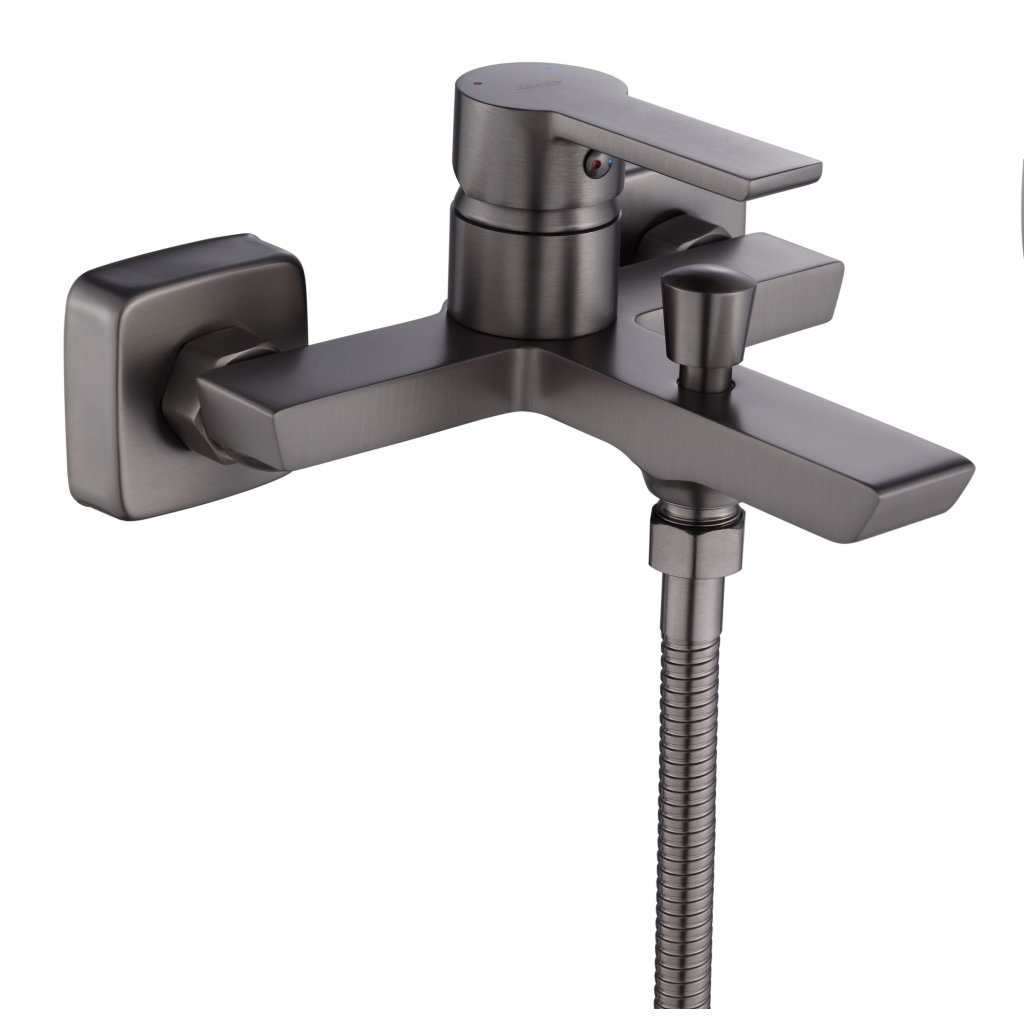 Moderní a stylová vanová baterie vhodná pro každou koupelnu.Baterie je určena k montáži na zeď a každá z jejích součástí je vyrobena z kvalitní mosazi, laserově pokryté trojnásobným lakem v titanové barvě, který dá Vaší koupelně nutnou kapku elegance.