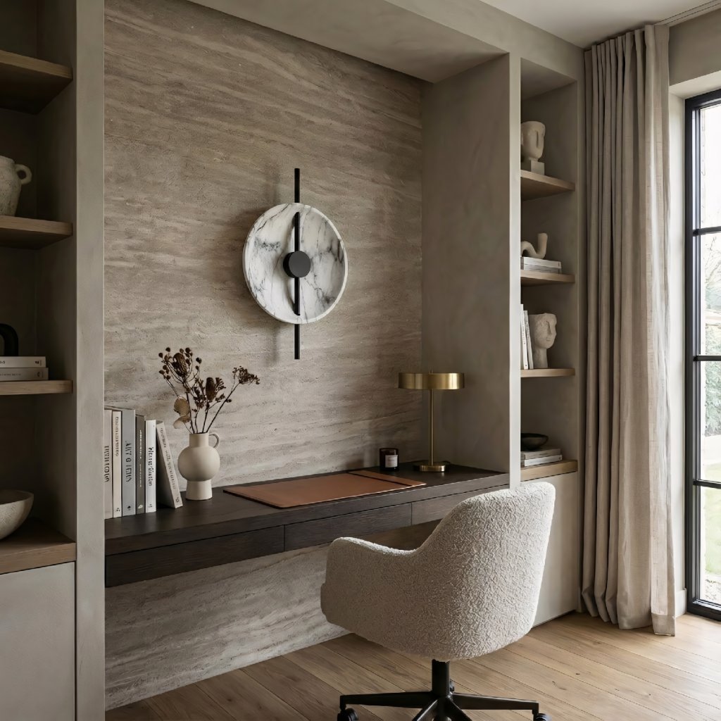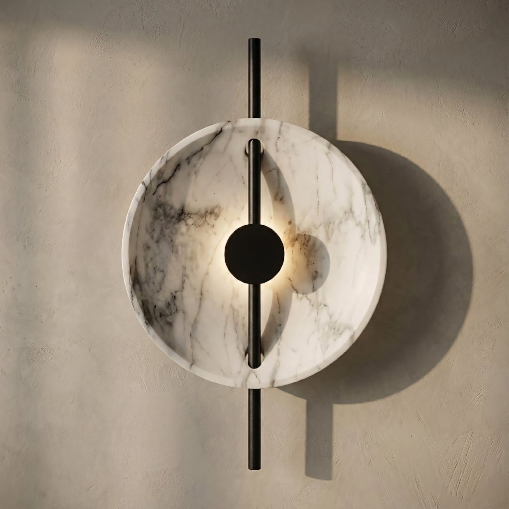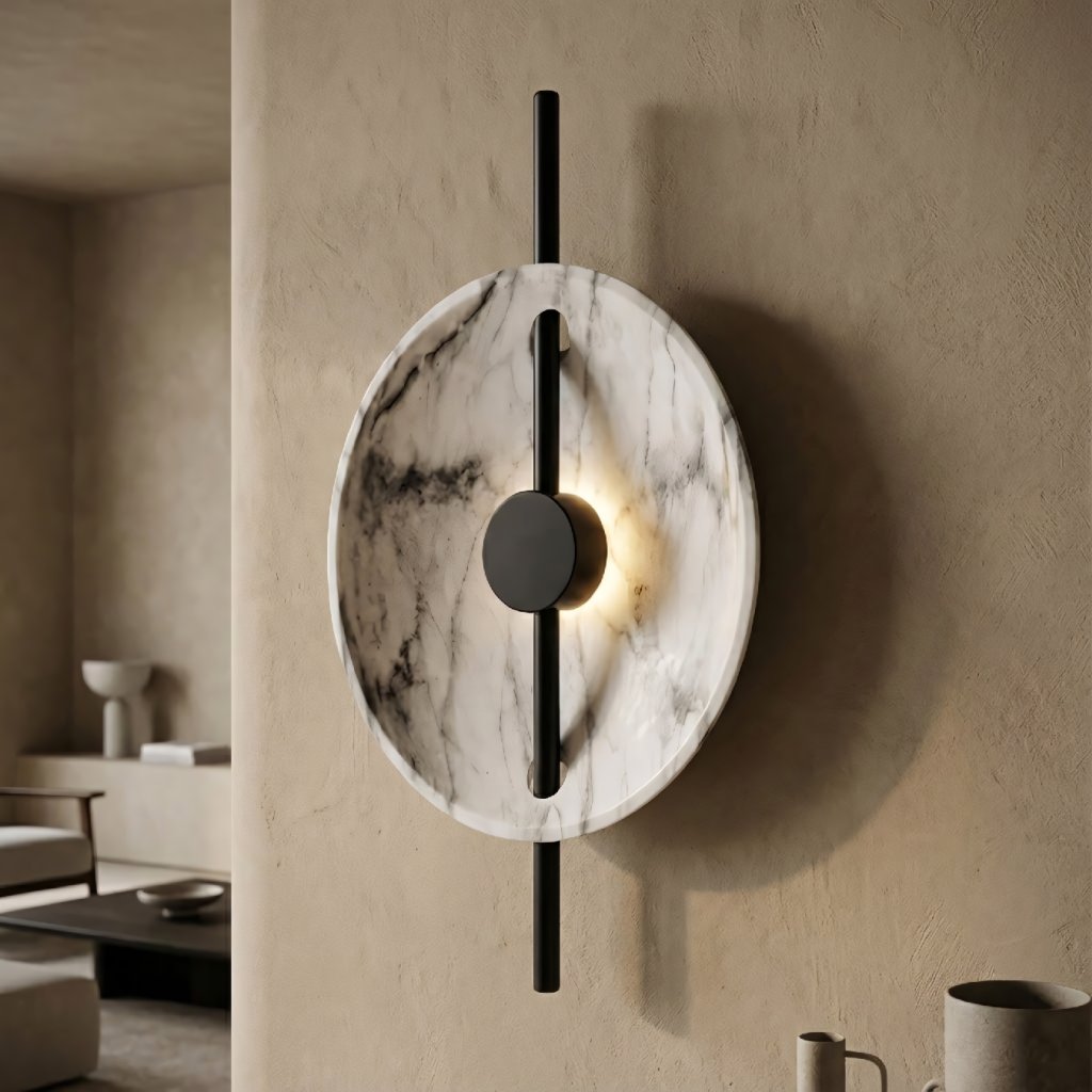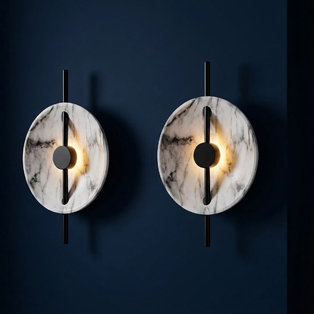 Moderní nástěnné LED svítidlo je elegantní volbou pro ty, kteří oceňují designové osvětlení s výrazným charakterem. Štíhlá svislá forma v černém provedení je propojena s kulatým dekorativním prvkem se strukturou inspirovanou mramorem, který přitahuje pozornost a dodává svítidlu luxusní vzhled. Kontrast mezi hlubokou černou a světlou kamennou texturou vytváří ucelenou kompozici, která se ideálně hodí do moderních interiérů. Konstrukce svítidla i maskovnice jsou vyrobeny z kovu, což zajišťuje odolnost a stabilitu, zatímco dekorativní akrylový talíř plní estetickou funkci a jemně rozptyluje světlo. Integrovaný LED zdroj s neutrální barvou 4000K vyzařuje jasné, přirozené světlo, které je příjemné pro oči a skvěle se hodí pro každodenní použití. Svítidlo se výborně uplatní jako doplňkové osvětlení v obývacím pokoji, ložnici, chodbě nebo jako stylový akcent v pracovně. Díky svému dekorativnímu charakteru podtrhne styl interiérů laděných do moderny, modern classic, loftu i glamour.