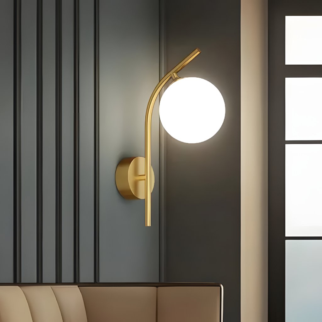 Stylové nástěnné osvětlení ve zlaté barvě je elegantní kombinací klasiky a moderny, která se perfektně hodí do interiérů ložnice, obývacího pokoje, chodby či pracovny. Stínidlo v podobě mléčně bílé koule poskytuje příjemné, rozptýlené světlo, čímž vytváří v místnosti atmosféru. Zlaté provedení dodává lampě luxusní charakter, zatímco štíhlá konstrukce působí velmi lehce a subtilně.