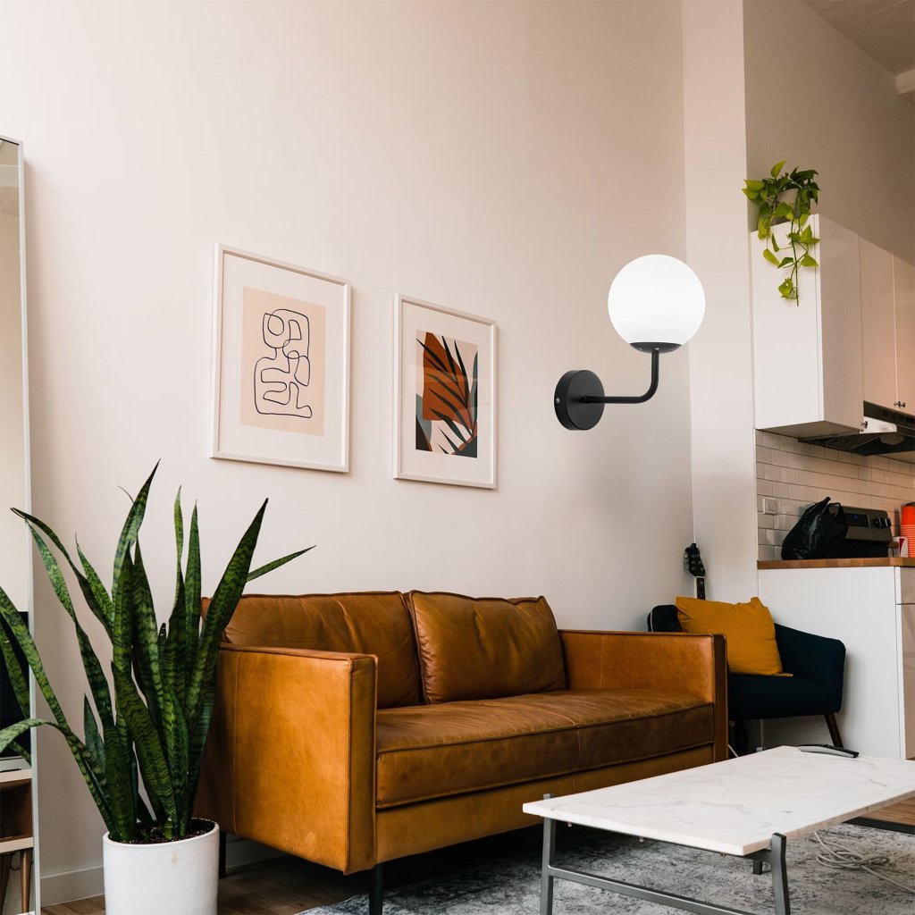 Moderní nástěnné osvětlení v matné černé barvě je ideální volbou pro milovníky minimalistických a loftových interiérů. Jednoduchá konstrukce s jemně zakřiveným ramenem a kulaté stínidlo z mléčně bílého skla tvoří stylovou dvojici, která se skvěle hodí jak do předsíně, obývacího pokoje, tak i ložnice. Černé provedení dodává lampě eleganci a charakter, a zároveň je subtilním, ale výrazným designovým akcentem.