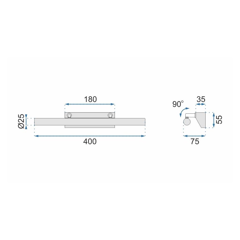 Nadčasové a elegantní LED nástěnné svítidlo, ideální jako osvětlení koupelny nad zrcadlem i výloh nebo kadeřnických salonů.Vyrobeno z nerezové oceli. Bude vypadat perfektně jako osvětlení obrazu.