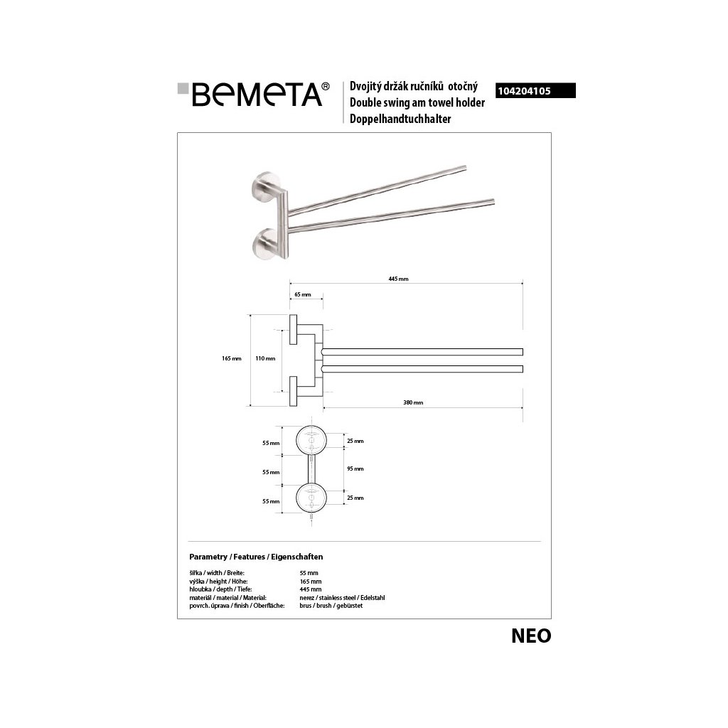 NEO: Držák ručníků dvojitý otočný 445 mm - 104204105
