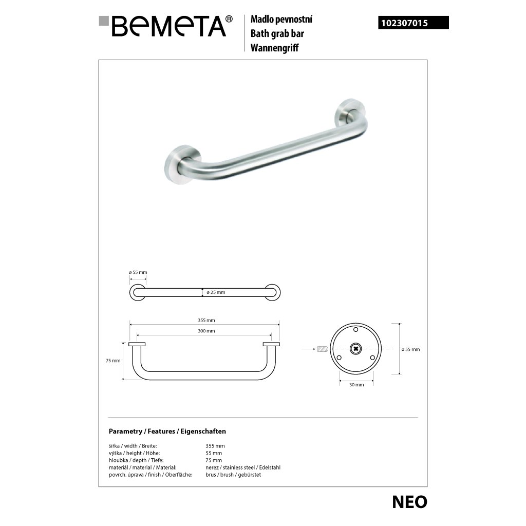NEO - dokonalý NEREZový luxus. Koupelnové doplňky řady NEO zastupují naopak dokonalý nerezový luxus. Broušený povrch oceli je velmi praktický, působí čistě, decentně a zároveň kvalitně.Doplňkové parametry