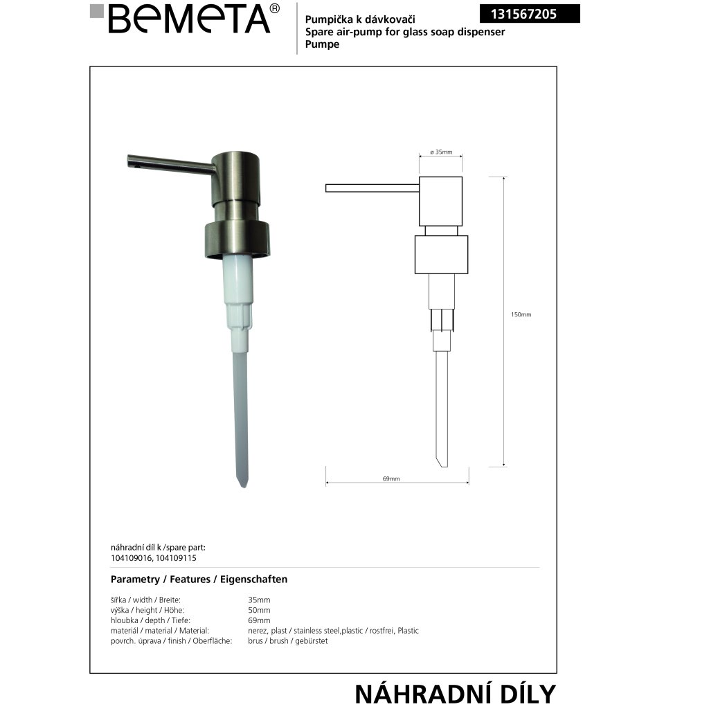 Náhradní pumpička pro dávkovač 104109016, 104109115, 104109015, 180009045 - 131567205