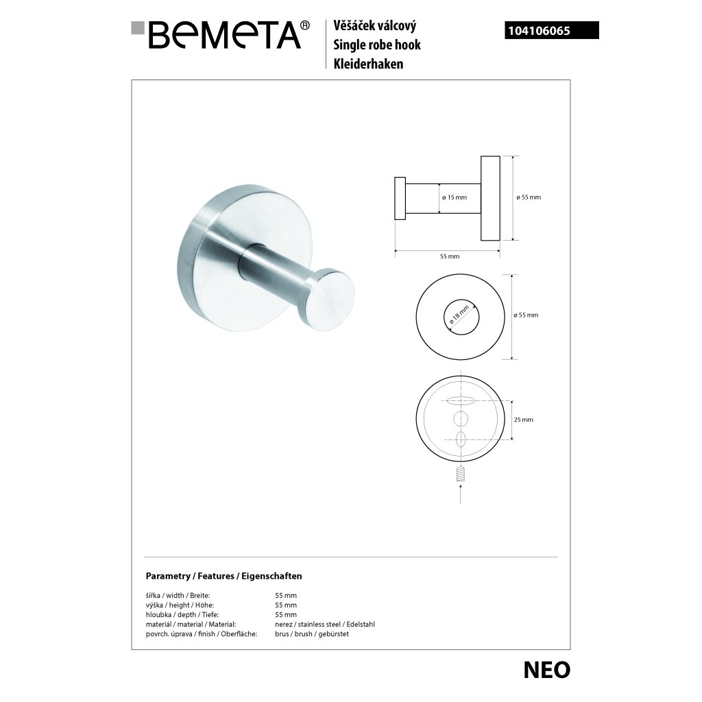NEO - dokonalý NEREZový luxus. Koupelnové doplňky řady NEO zastupují naopak dokonalý nerezový luxus. Broušený povrch oceli je velmi praktický, působí čistě, decentně a zároveň kvalitně.Doplňkové parametry
