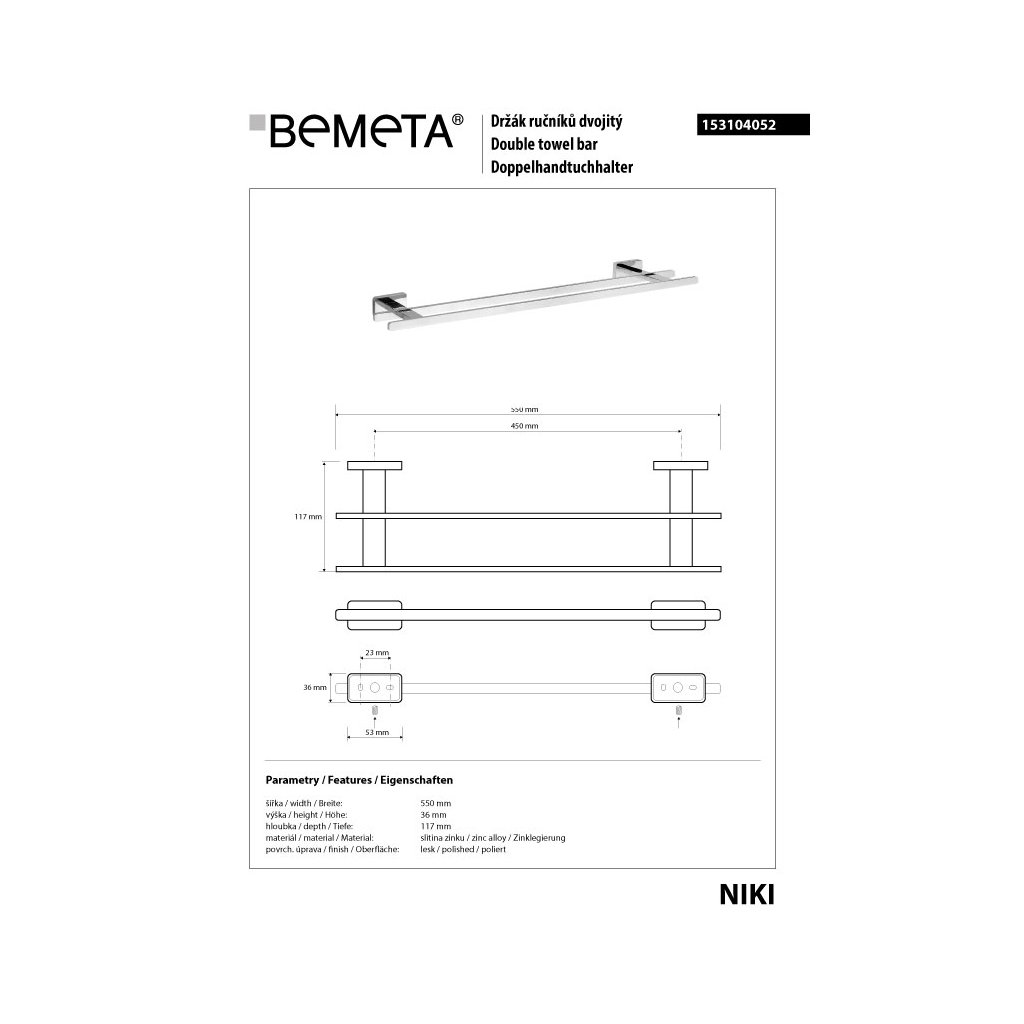 NIKI: Držák ručníků dvojitý 450 mm - 153104052