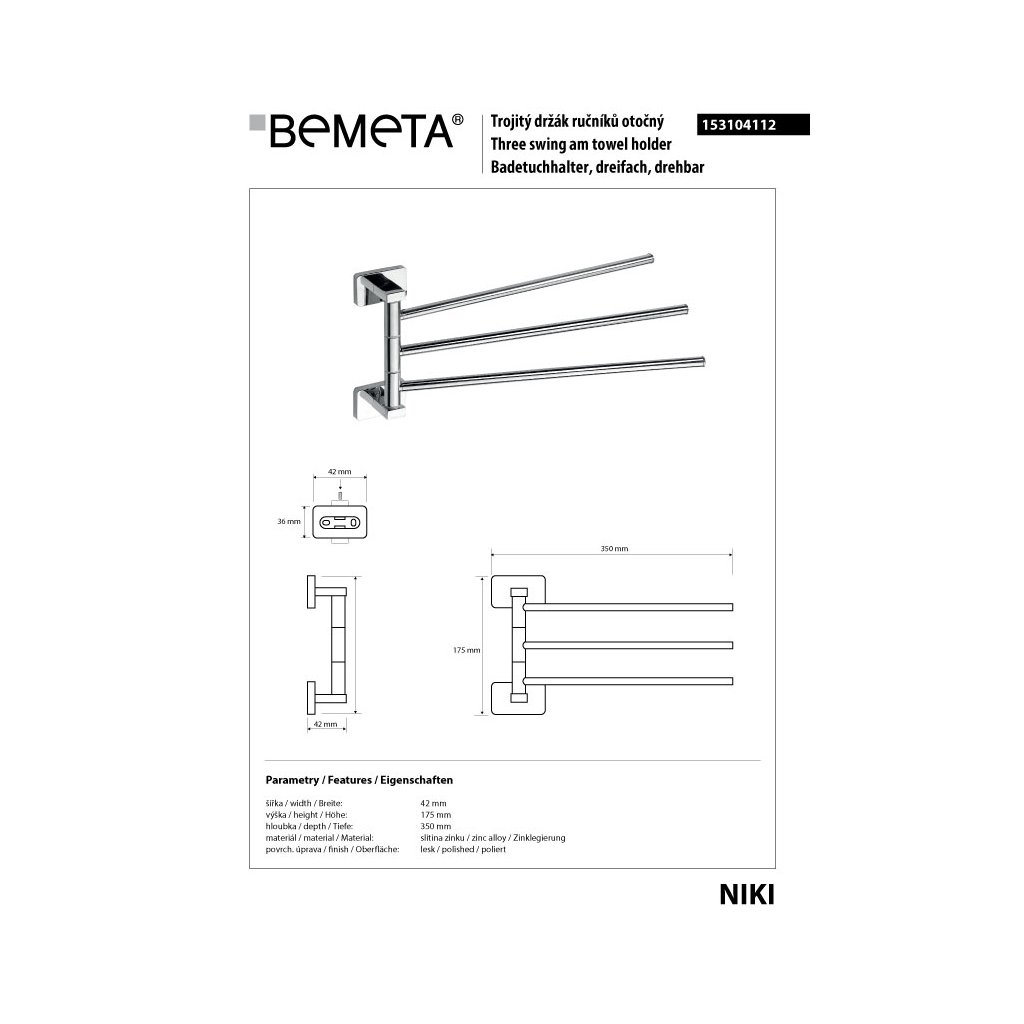 NIKI: Držák ručníků trojitý otočný 350 mm - 153104112