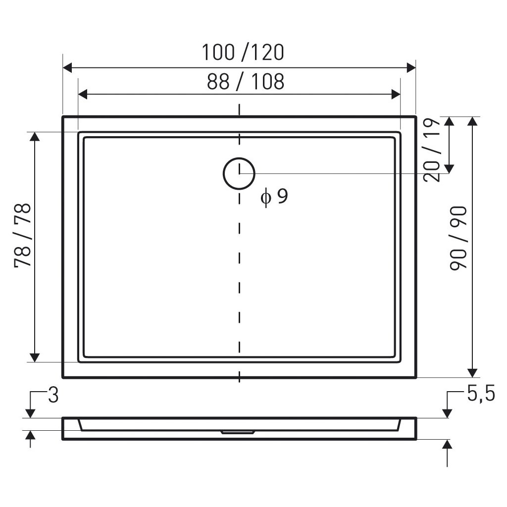 - Sifon: Sifon není součástí balení. Doporučujeme zakoupit vaničkový sifon s ⌀90 mm. (viz doporučené produkty)