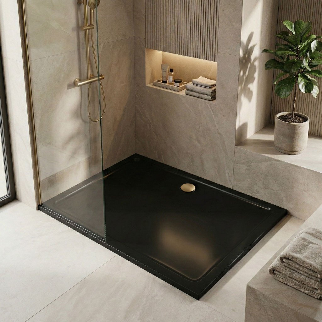 Vytvořte si ve své koupelně dokonalou oázu čistoty a relaxace s naší elegantní černou sprchovou vaničkou. Tento model představuje ideální rovnováhu mezi špičkovou funkčností a moderní estetikou. Díky nízkému profilu a instalaci přímo na podlahu získá váš sprchový kout čisté linie, které opticky zvětší a provzdušní celý prostor.