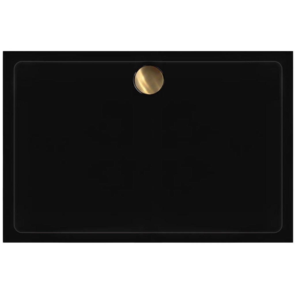 Obdélníková akrylátová sprchová vanička REA SAVOY 100x80 cm černá, krytka - zlatá kartáčovaná