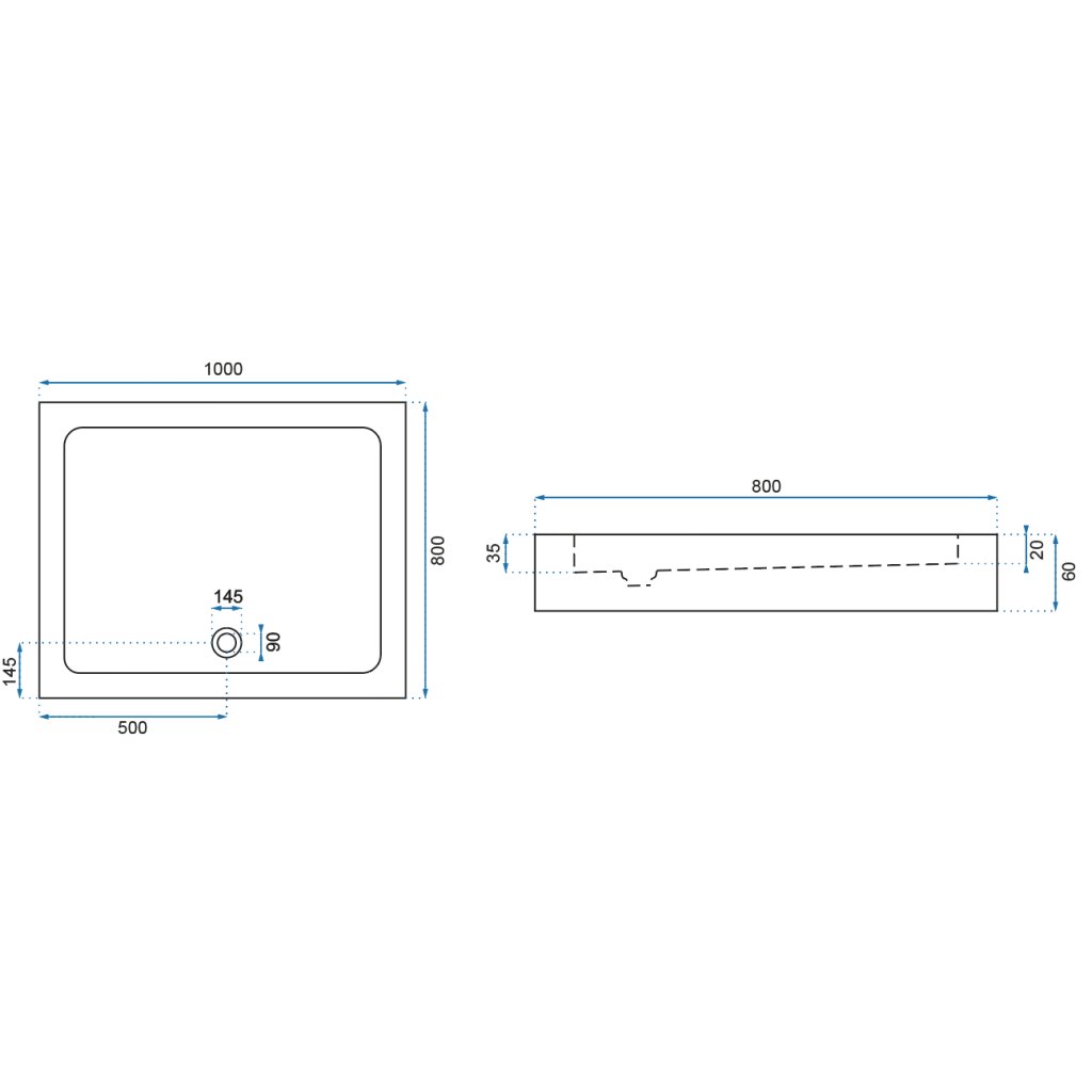 - Rozměry: Délka 1000 mm, šířka 800 mm.
