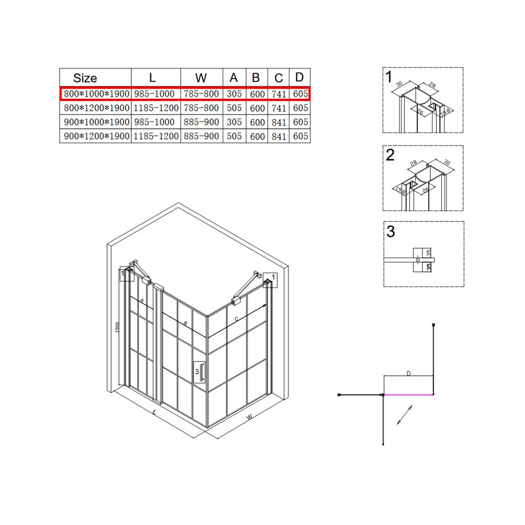 Obdélníkový sprchový kout HYD-OK02AM 100x80 černá/transparent - bez vaničky