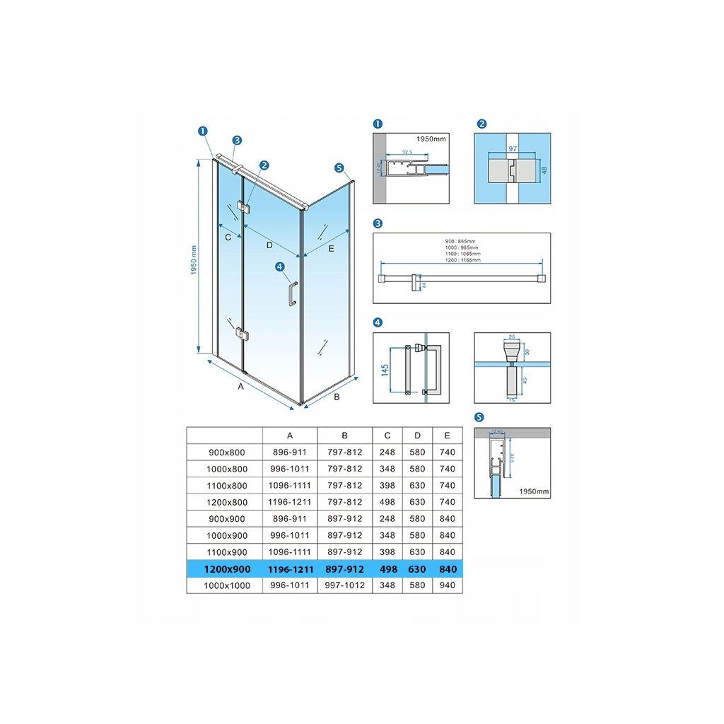 | Šířka zástěny (mm): | 900 |