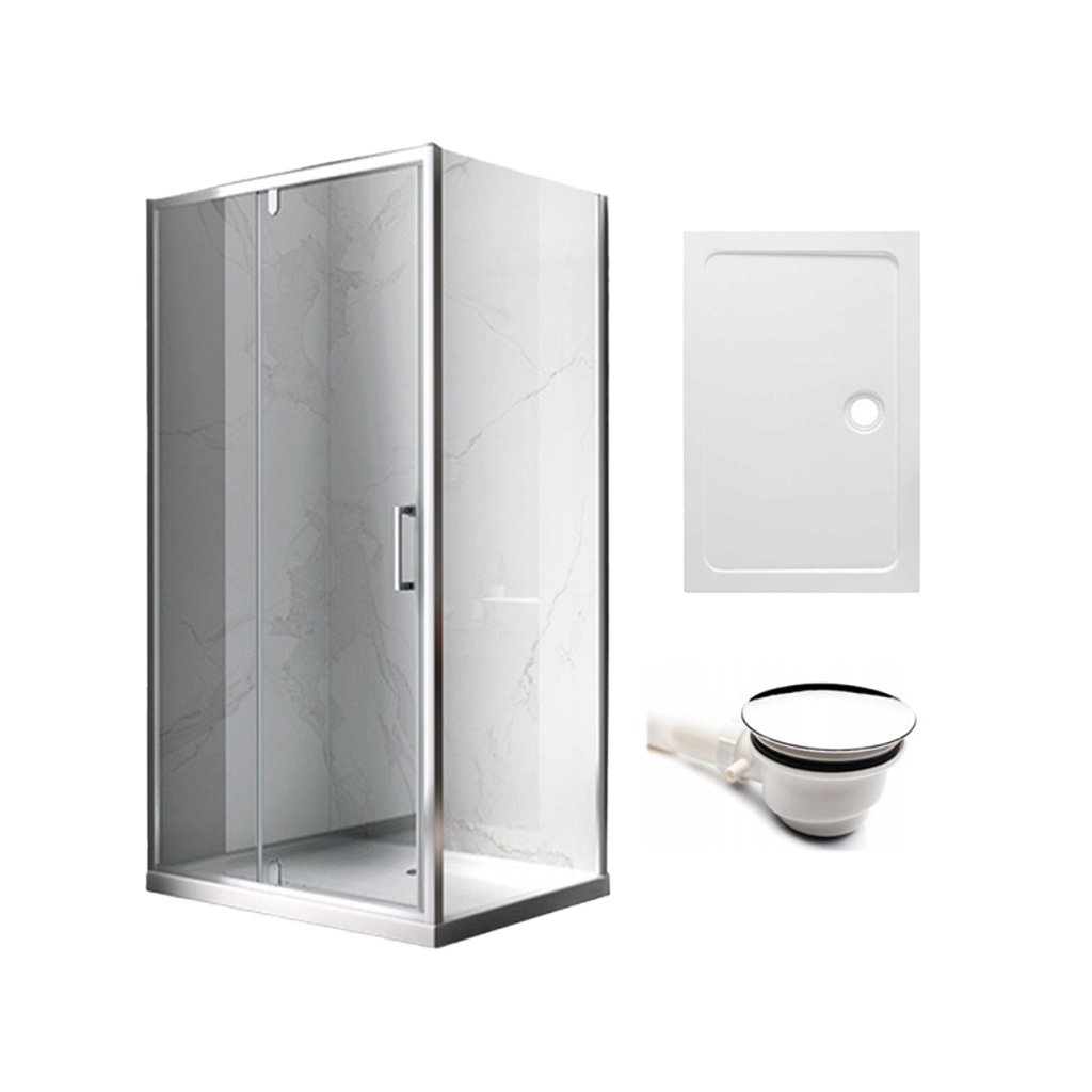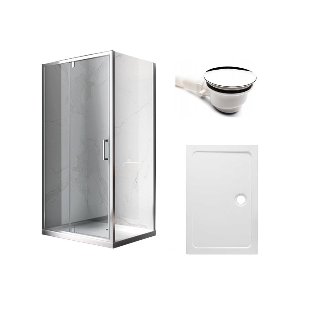 Obdélníkový sprchový kout HYD-OK06B 100x80 chrom/transparent + vanička HYD-OSV-ST03A bílá