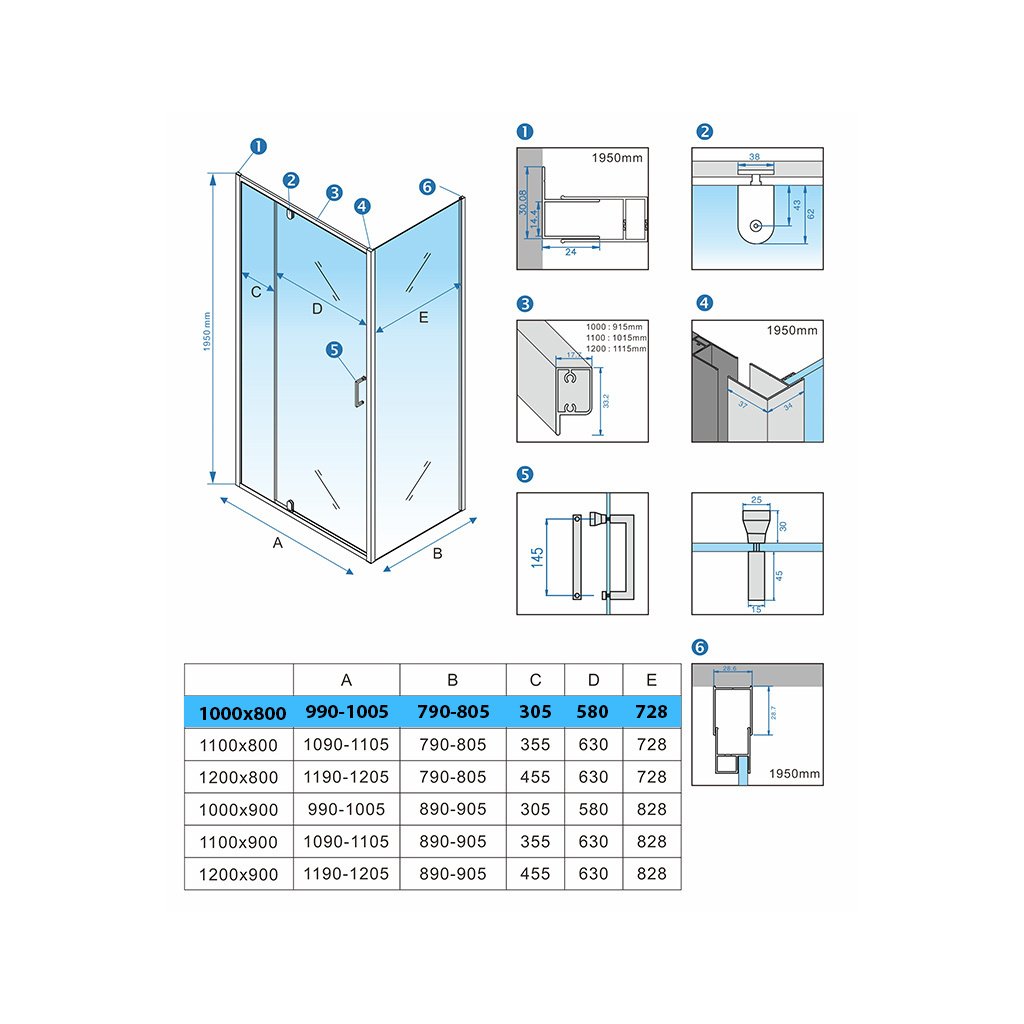 | Instalační rozměry - zástěna (mm): | 790-805 |