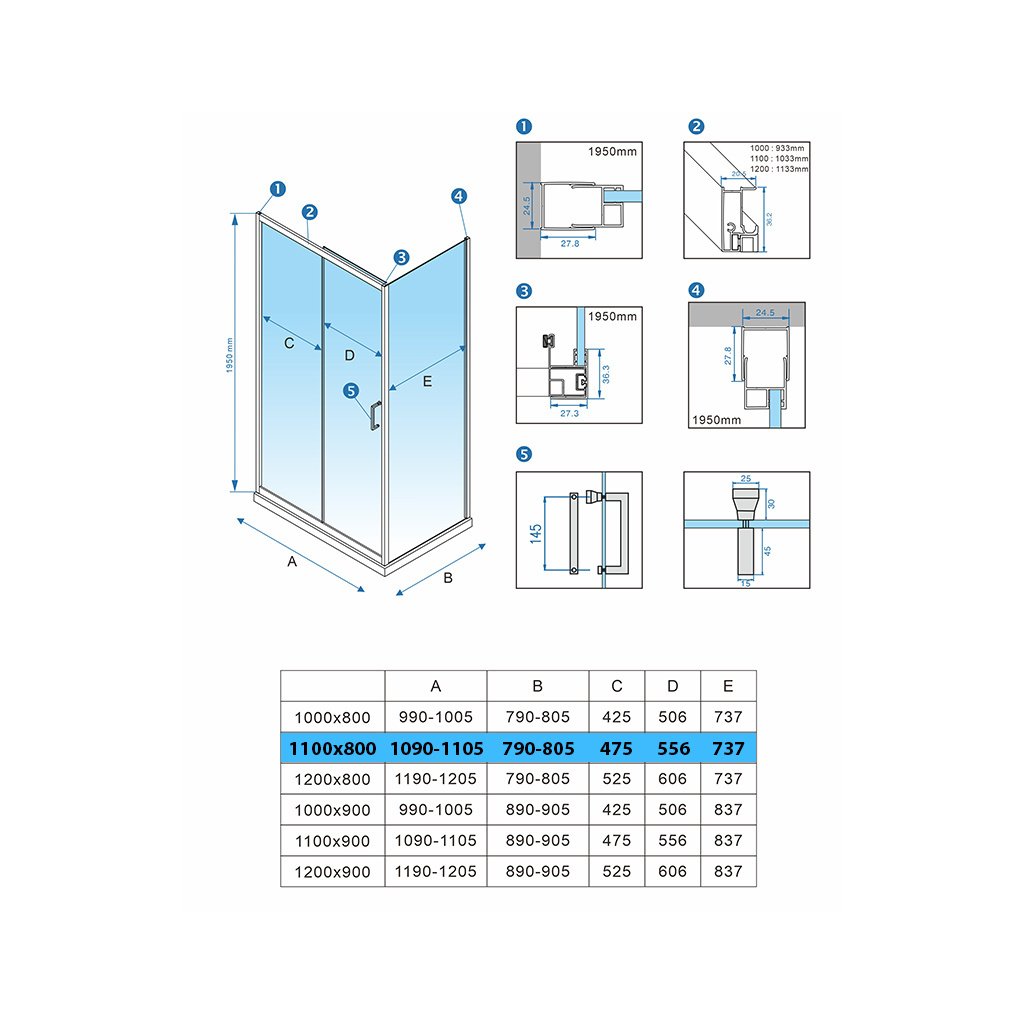 | Šířka zástěny (mm): | 800 |