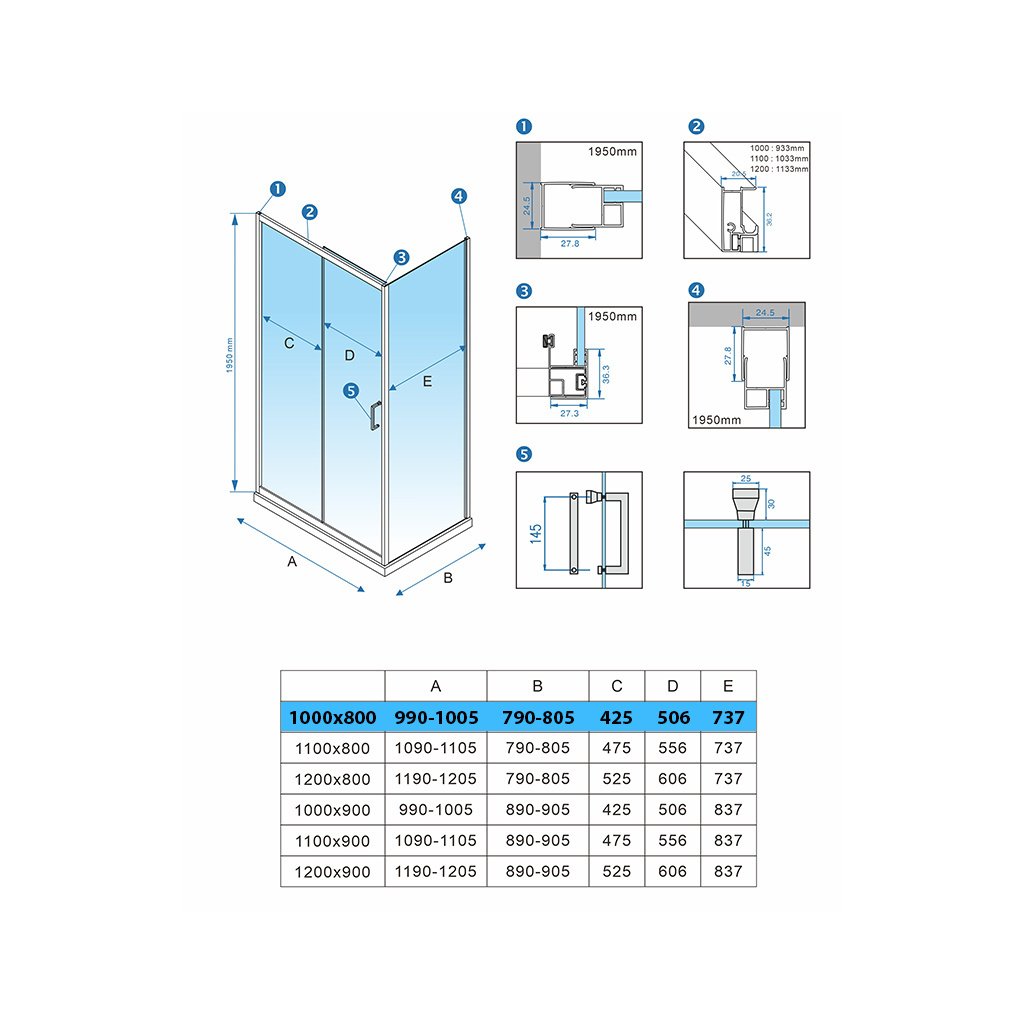 | Instalační rozměry - zástěna (mm): | 790-805 |