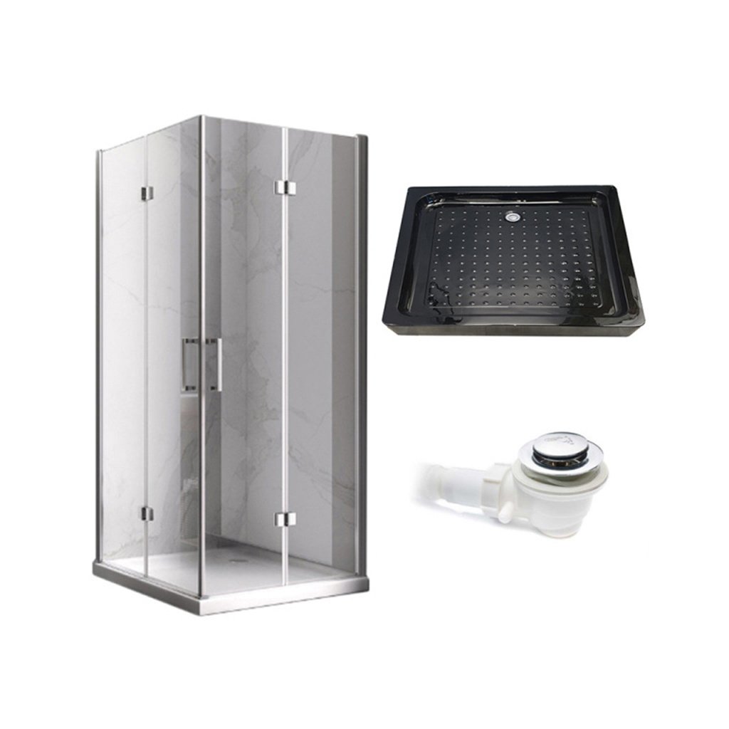Obdélníkový sprchový kout HYD-OK12A 90x80 chrom/transparent + vanička HYD-OSV-SXL03B černá + vanička HYD-OSV-SXL03E černá + sifon je vyroben z odolných a kvalitních komponentů splňují požadavky i těch nejnáročnějších zákazníků.