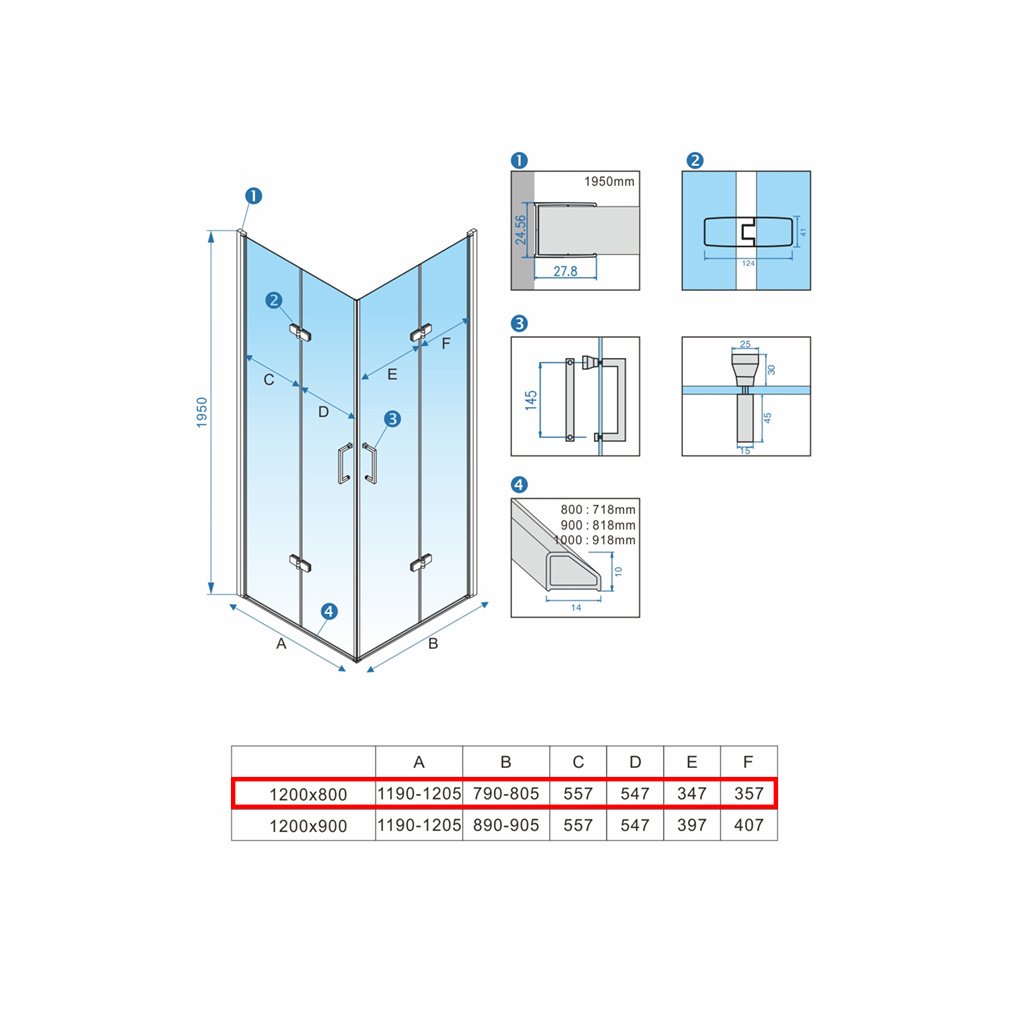 - Rozměry sprchového koutu: