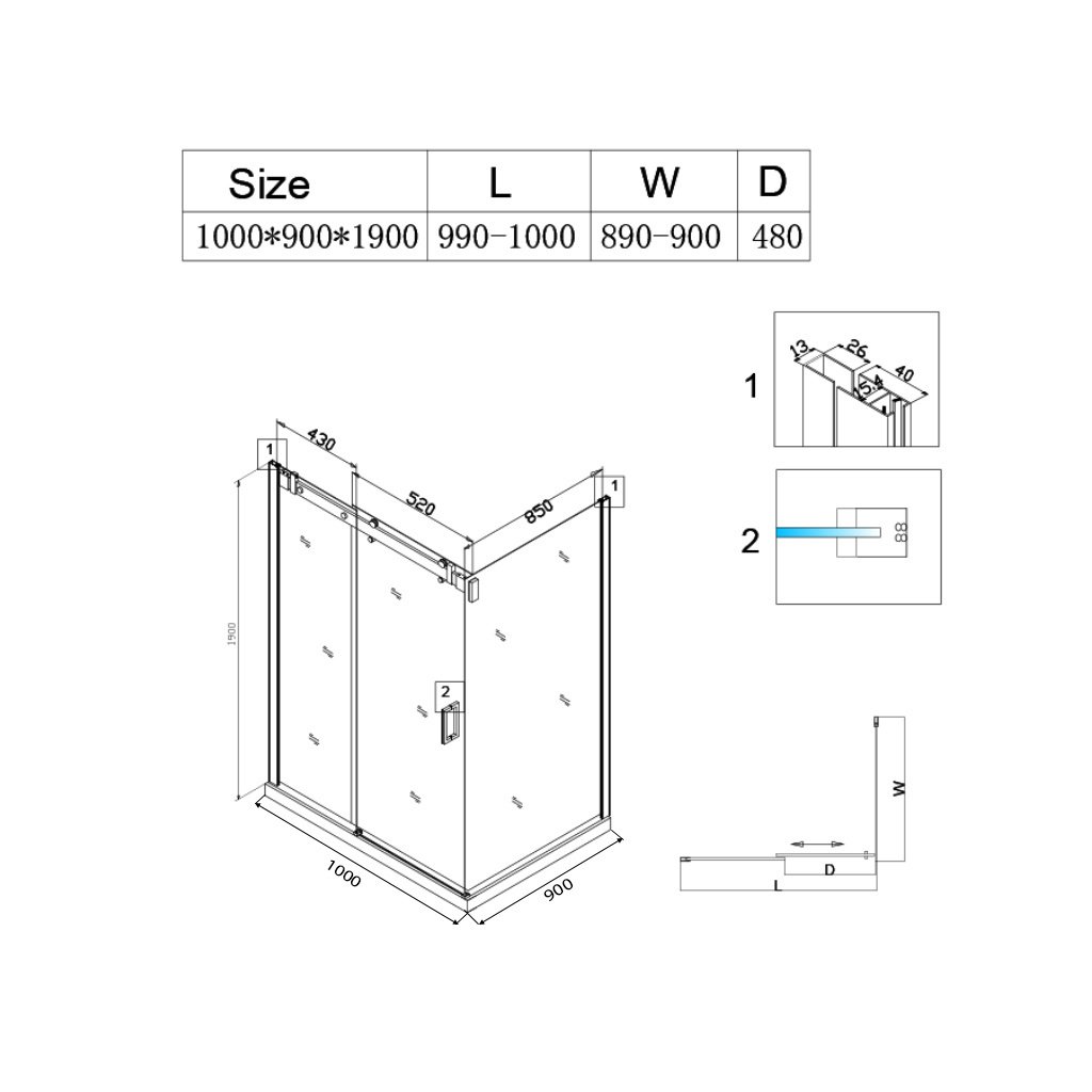| Instalační rozměry - zástěna (mm): | 890-900 |