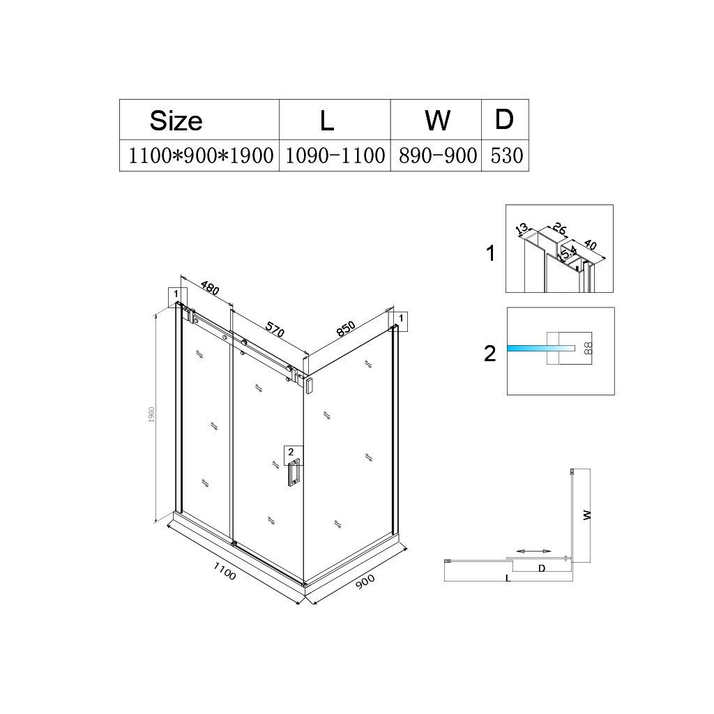 | Instalační rozměry - zástěna (mm): | 890-900 |