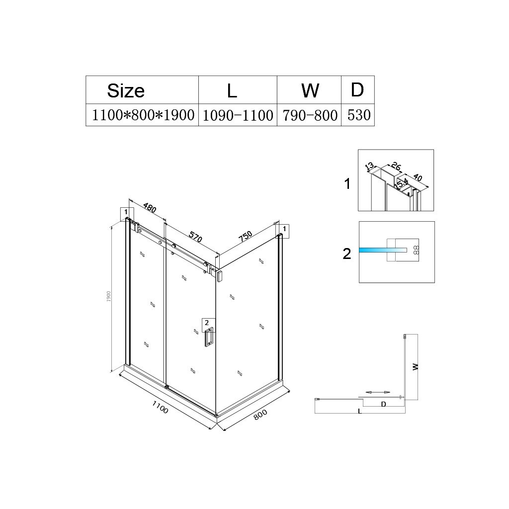 | Šířka zástěny (mm): | 800 |