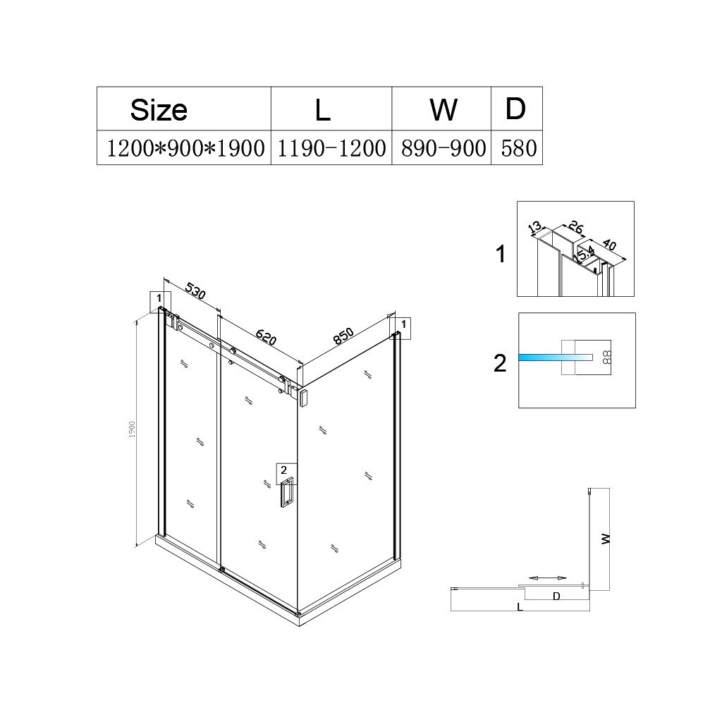| Instalační rozměry - zástěna (mm): | 890-900 |