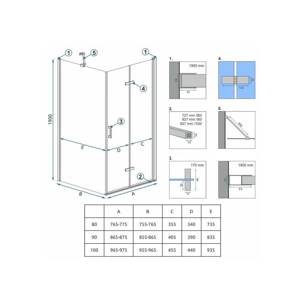 Obdélníkový sprchový kout REA MOLIER 90/dveřex80/zástěna cm, chrom/transparent - bez vaničky