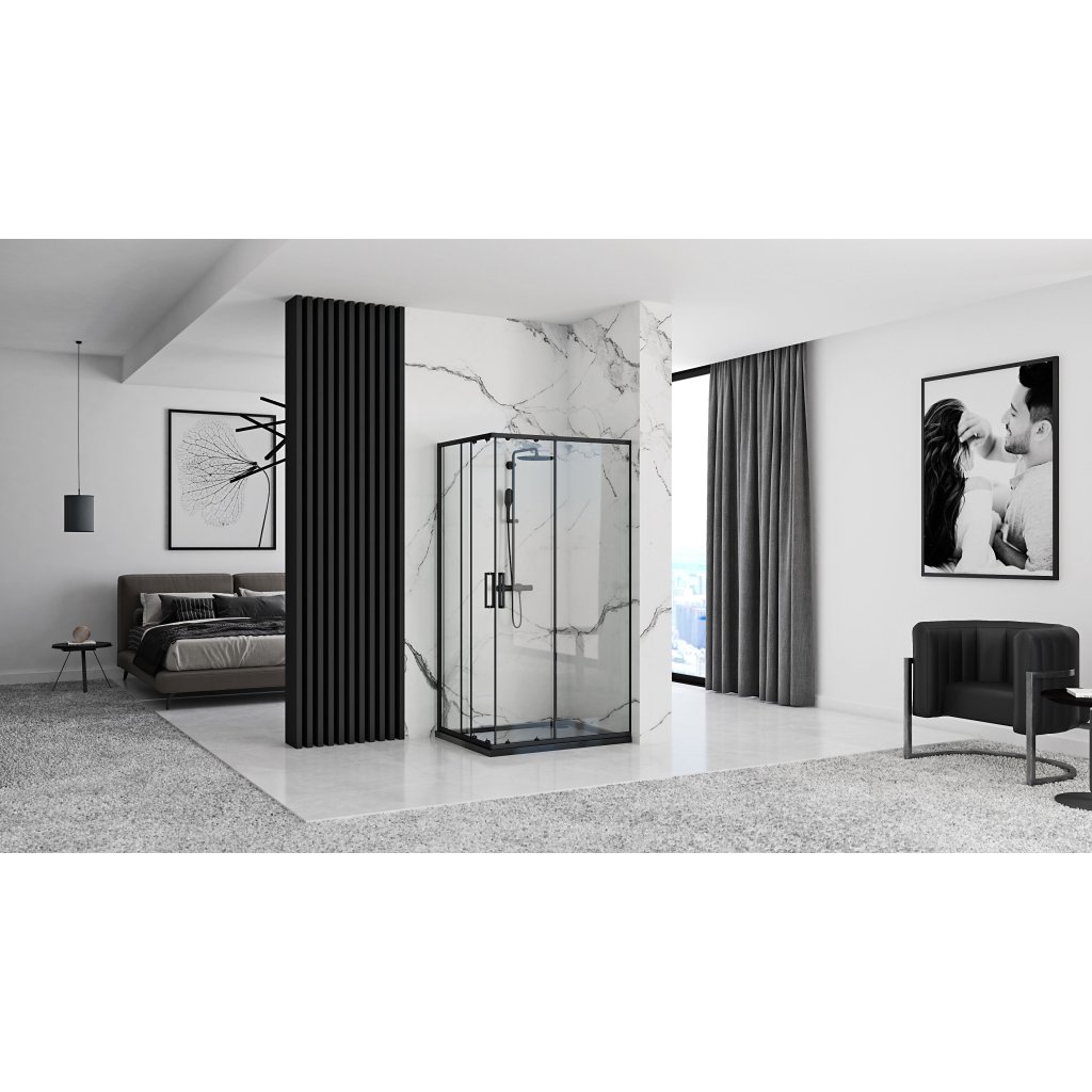 Obdélníkový sprchový kout REA PUNTO 80x100 cm, černý/transparent + vanička Savoy černá