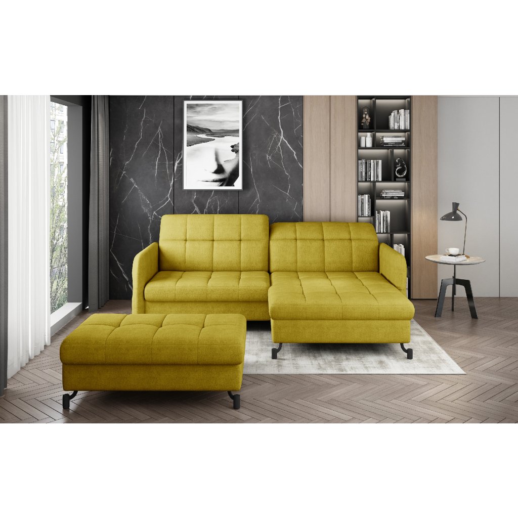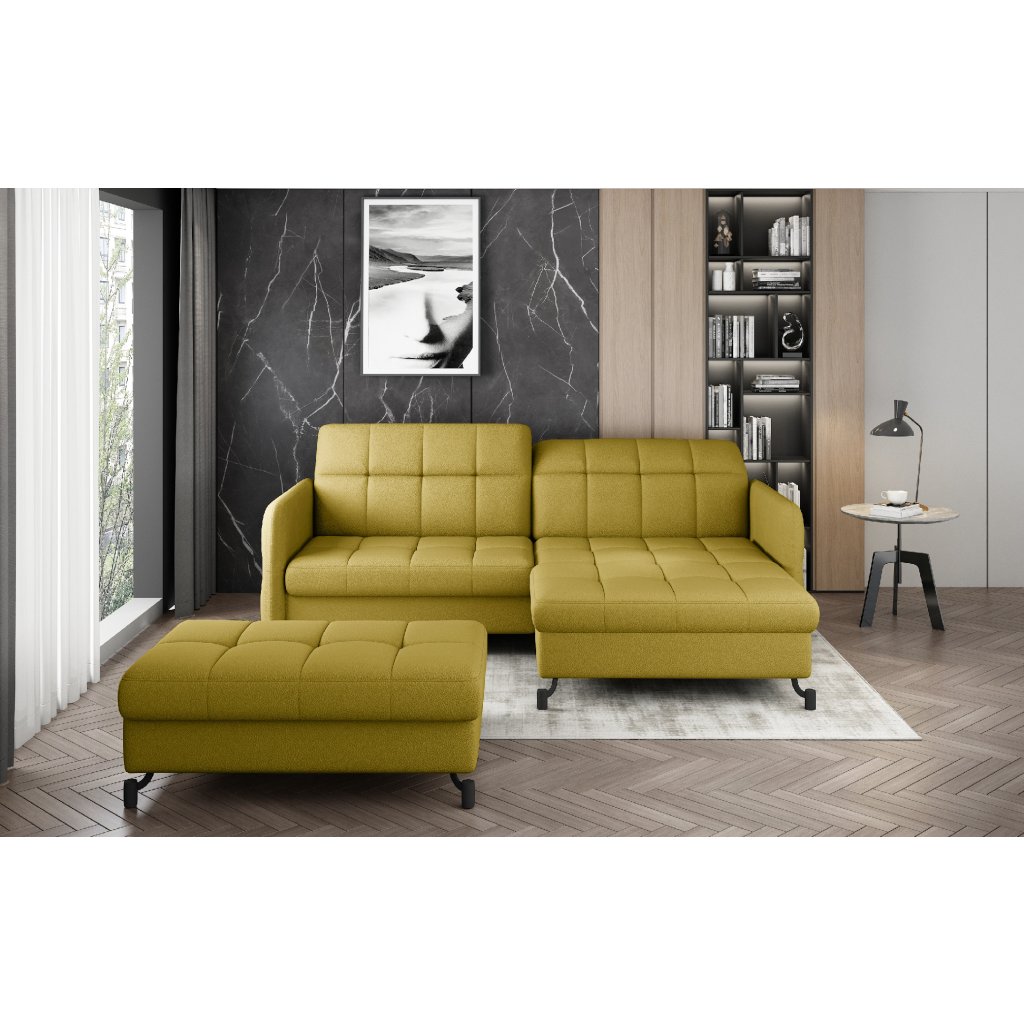 Souprava Lorelle je kompaktní rohová sedací souprava s funkcí spaní a taburetem.Její elegantní linie spolu s černou kovovou nohou se skvěle hodí do moderních i klasických interiérů.